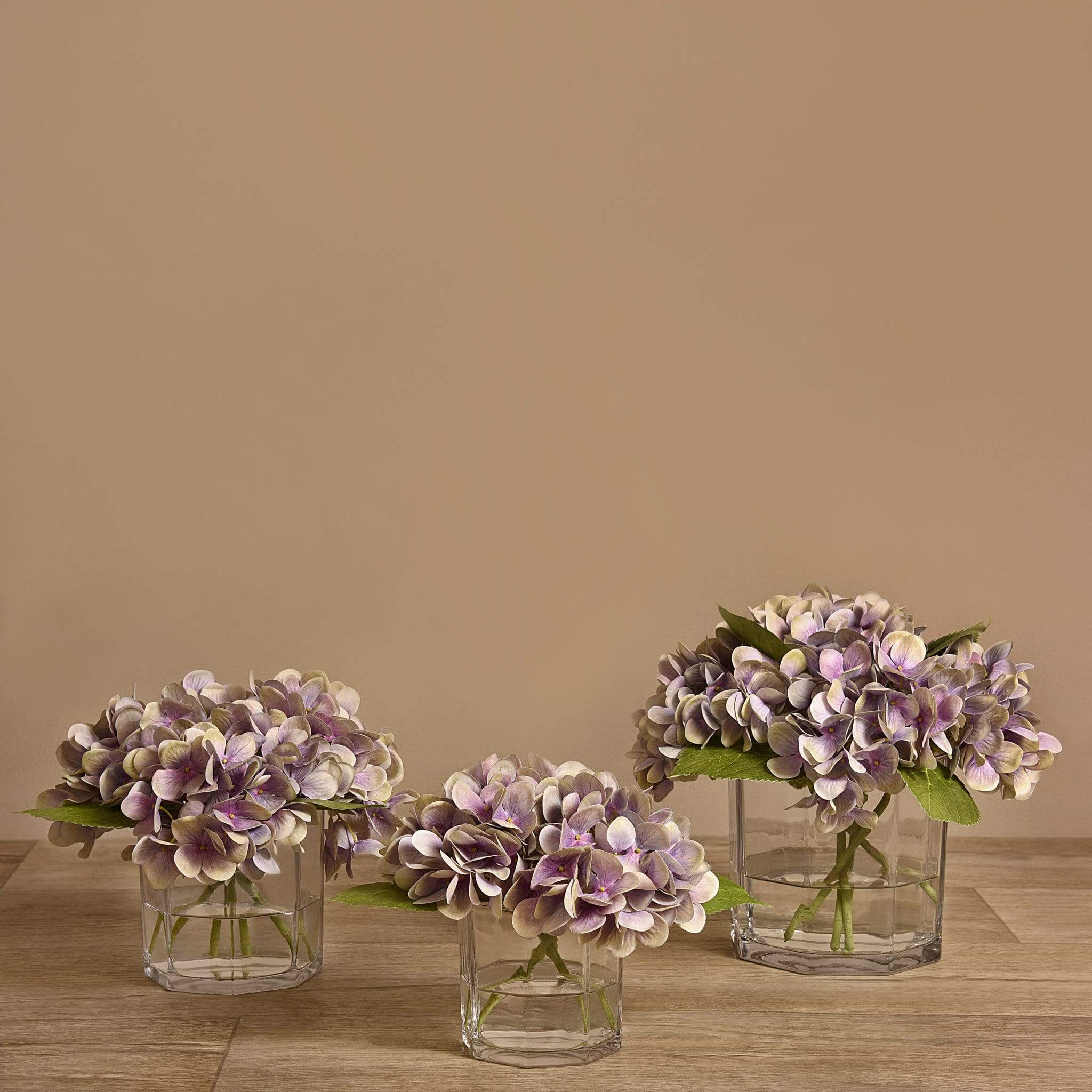 تتجلى الروعة الرومانسية لأزهار الهدرانج في هذه الباقة الاصطناعية الأنيقة المعروضة داخل مزهرية زجاجية لامعة وعصرية. صممت لتمنح منزلك أو مكتبك لمسة من النضارة والجمال دون الحاجة إلى عناية مستمرة، فهي تجمع بين مظهر طبيعي راقٍ وسهولة الاستخدام.