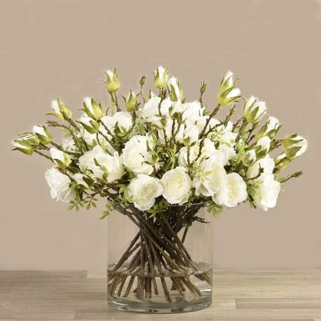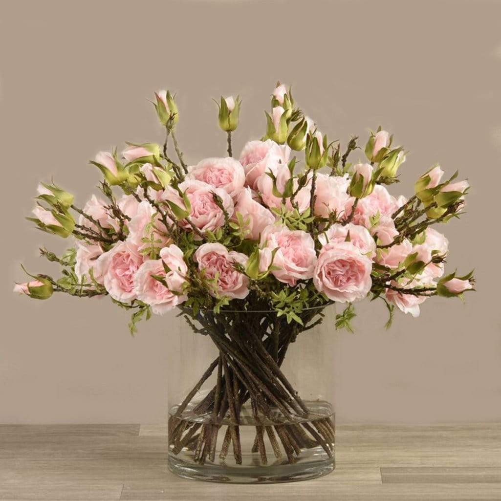 - تنسيق جاهز داخل مزهرية زجاجية أنيقة — مناسب للعرض الفوري.
