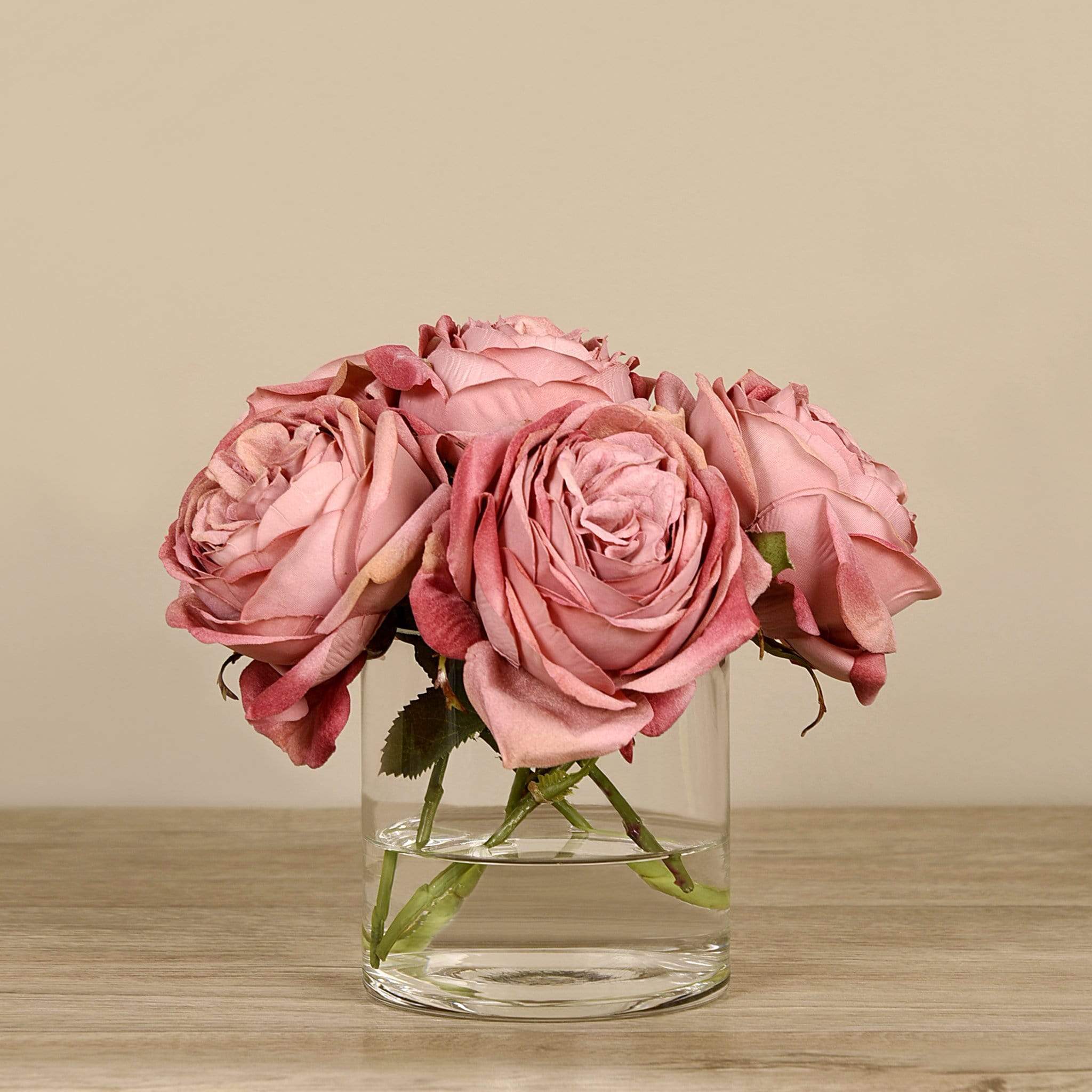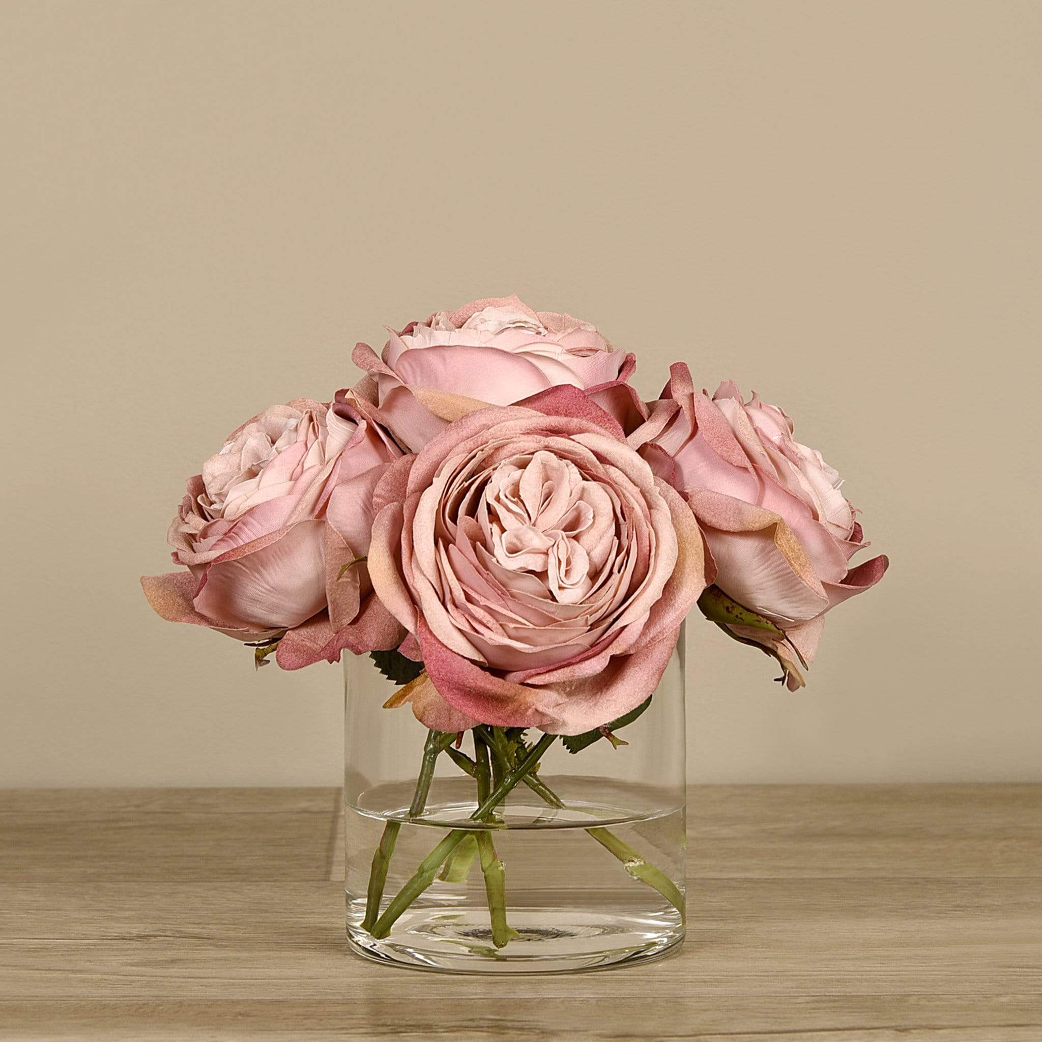 باقة ورود صناعية داخل مزهرية زجاجيةباقة ورود صناعية داخل مزهرية زجاجية