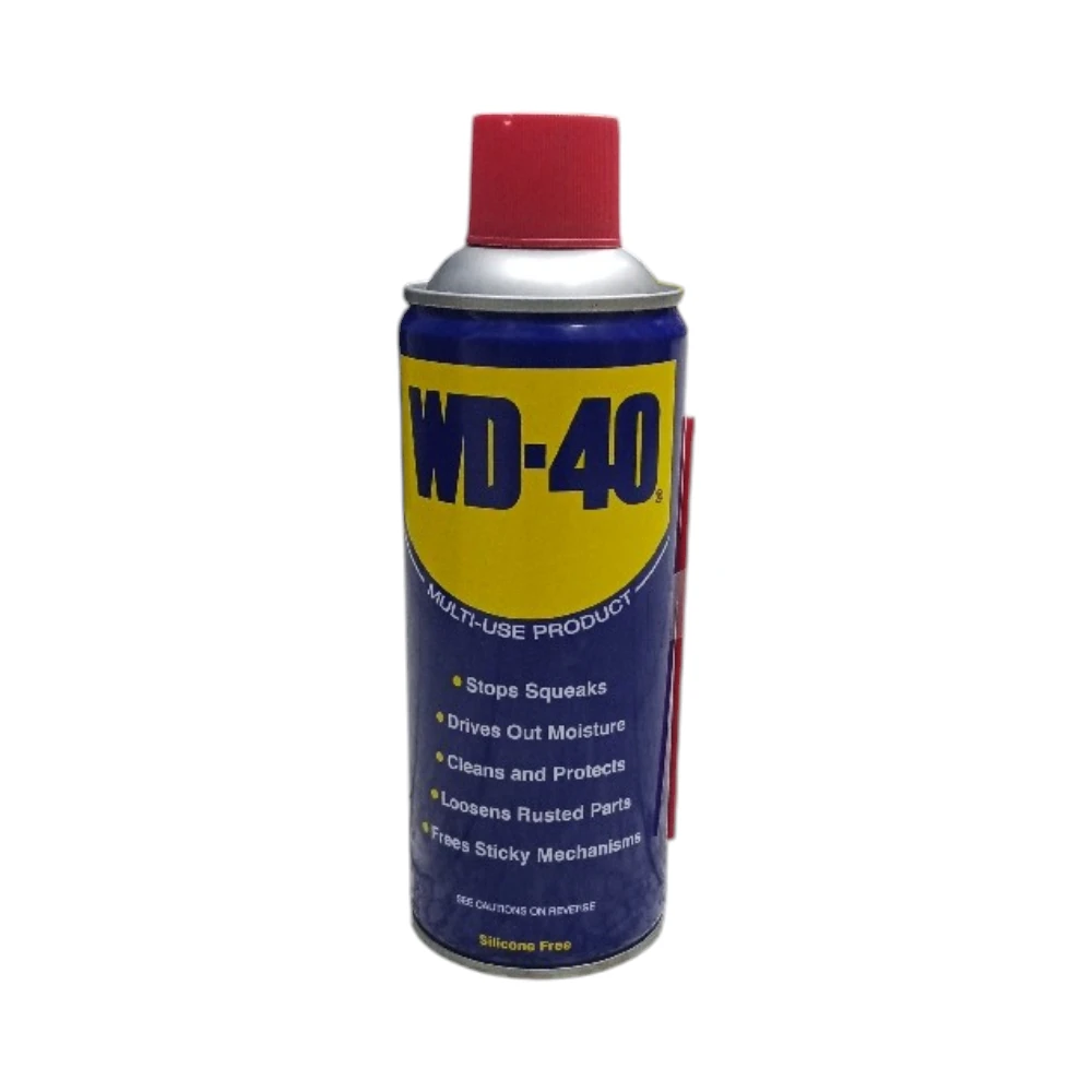 بخاخ WD-40 متعدد الاستخدامات هو محلول عملي وموثوق للصيانة المنزلية والورش. تركيبة فعّالة تطرد الرطوبة، تزيت الأجزاء المتحركة، تفك البراغي والمفاصل المتآكلة، وتكوّن طبقة حماية ضد الصدأ والتآكل — كل ذلك في عبوة بخاخ سهلة الاستخدام بحجم 330 مل.
