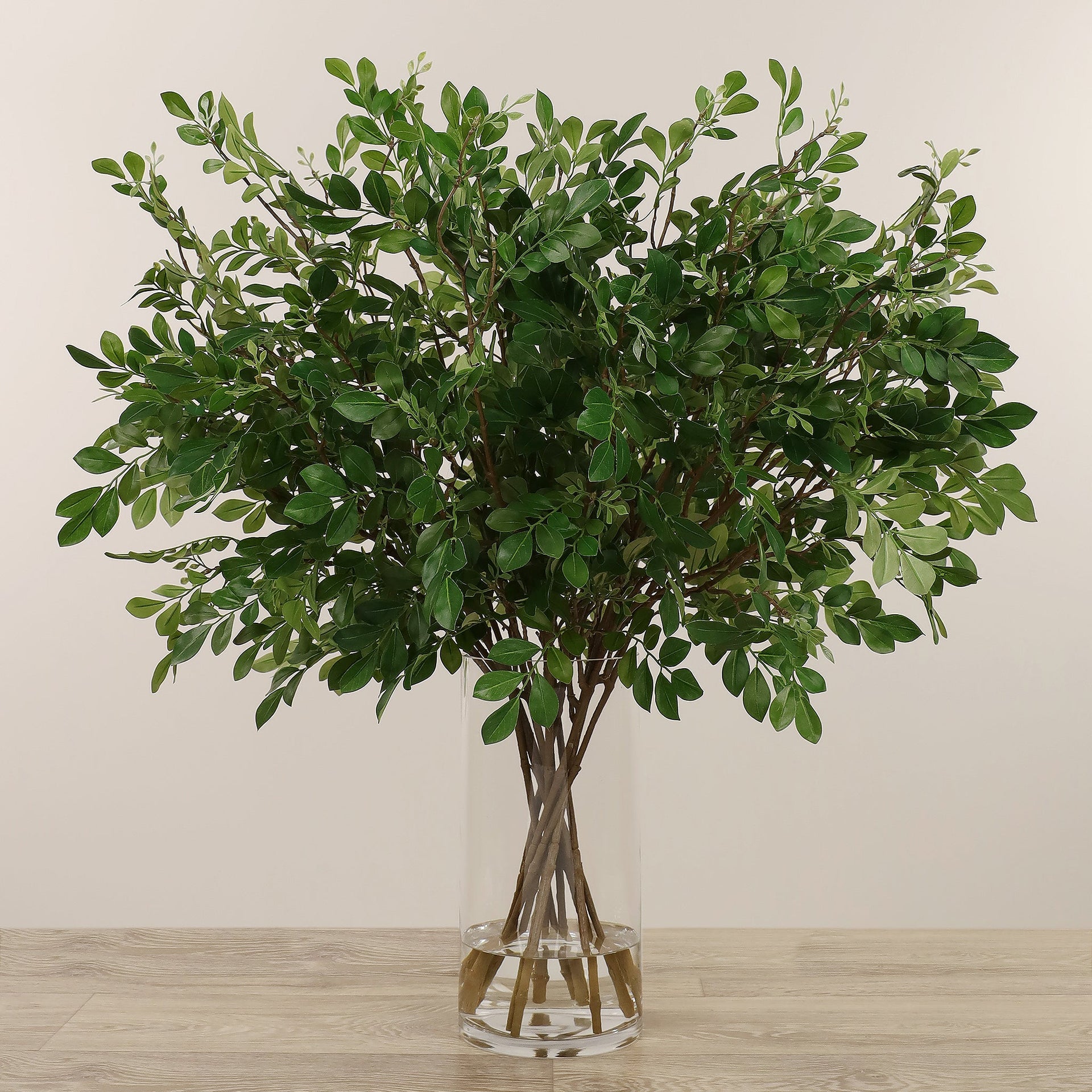 تنسيق نبات البوكسوود الصناعي في مزهرية زجاجية