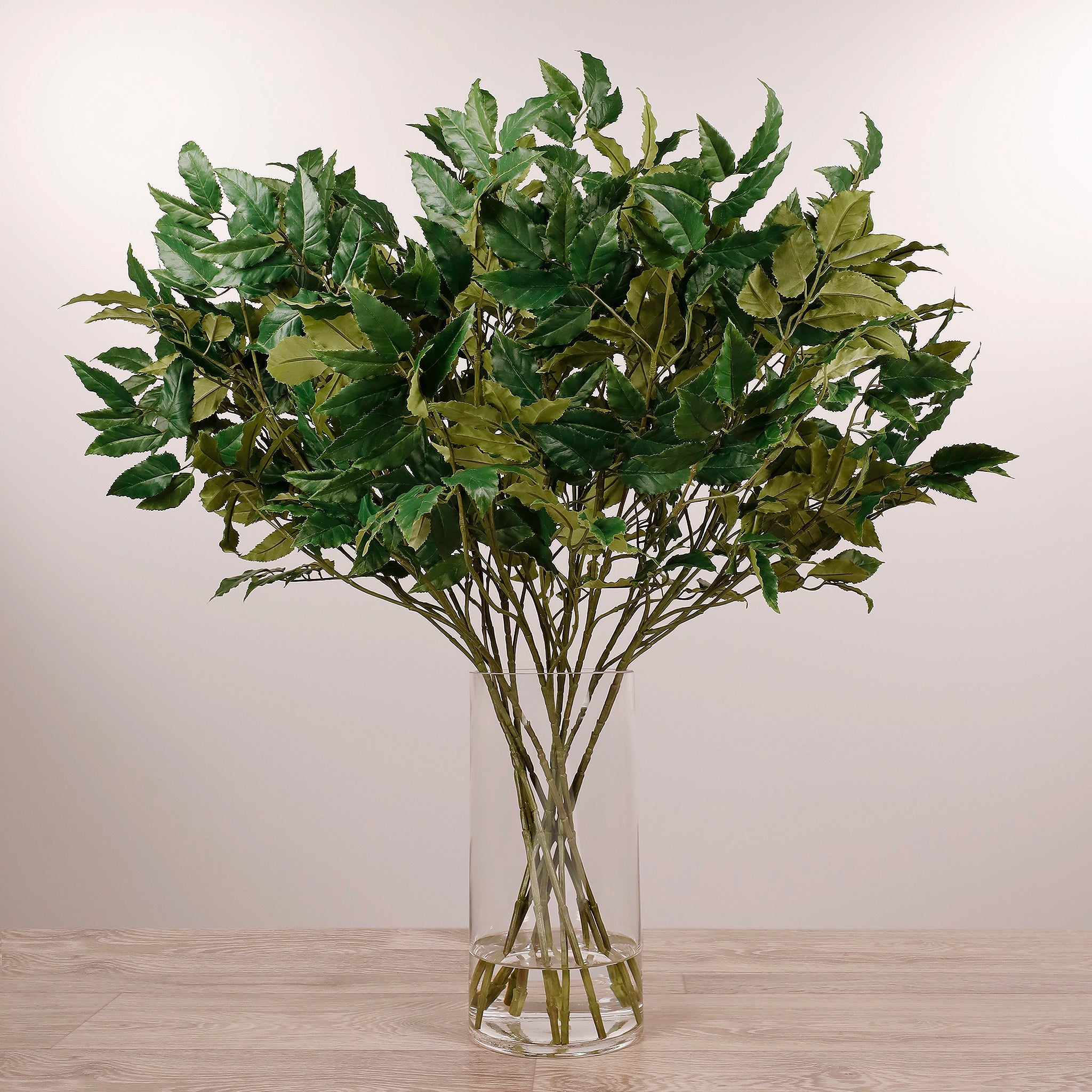 امنح مساحتك لمسة خضراء أنيقة دون عناء العناية اليومية. هذا الترتيب من أراليا مينغ الاصطناعية يأتي في مزهرية زجاجية شفافة ويضيف جواً من الحيوية والفخامة إلى أي غرفة—مثالي للمنزل والمكتب والمداخل.
