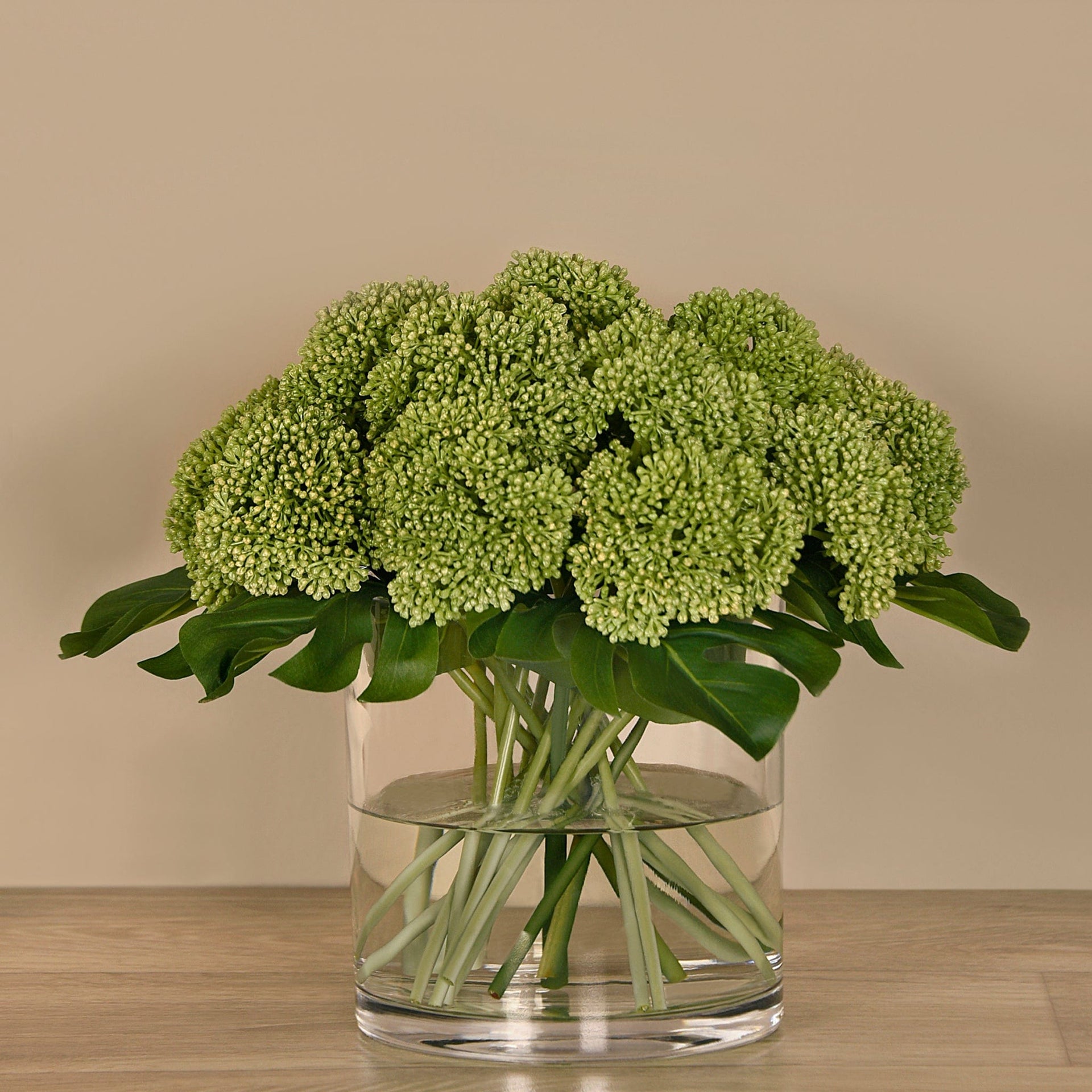 تشكيلة زهور كاليكاربا المنعشة والغنية معروضة في مزهرية زجاجية عصرية تضيف لمسة أناقة لأي زاوية في المنزل. أزهار اصطناعية عالية الجودة تبدو طبيعية، لا تحتاج إلى رعاية ولا تقلقك مسألة الري أو بقع الماء على الأثاث. تصميمها يمنح إحساساً صيفياً منعشاً ويمكن الاستمتاع به على مدار العام.