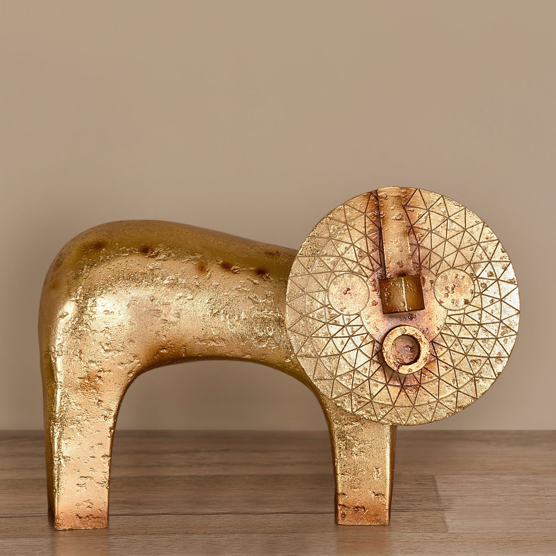 تمثال أسد زخرفي يجمع بين الفخامة والجرأة، بتشطيب ذهبي معدني وتفاصيل نحت دقيقة تمنحه طابعًا فنيًا مميزًا. يمكن عرضه بمفرده كقطعة محورية أو دمجه ضمن مجموعة لتحسين حضور المساحة وإضفاء لمسة أنيقة ورقيّة على الديكور.