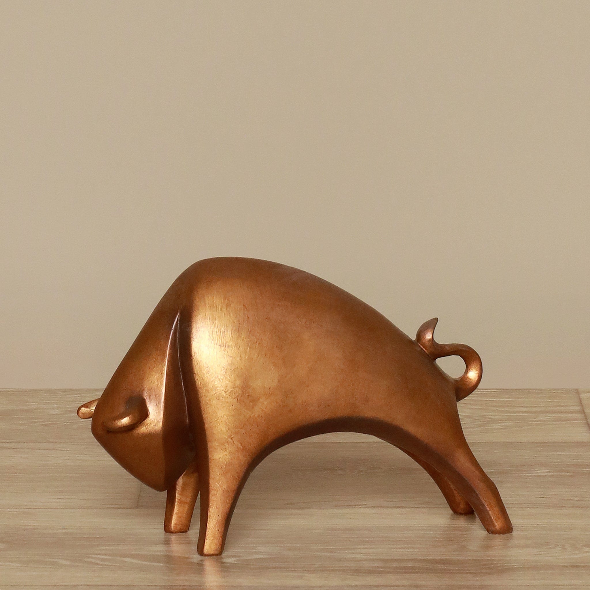 مجسم ثور أنيق بلمسة ذهبية يمنح أي مساحة طابعاً فاخراً ورونقاً معاصراً. تصميمه يعبر عن القوة والثبات، ويعد قطعة مثالية لتزيين المنازل، المكاتب أو المتاجر.