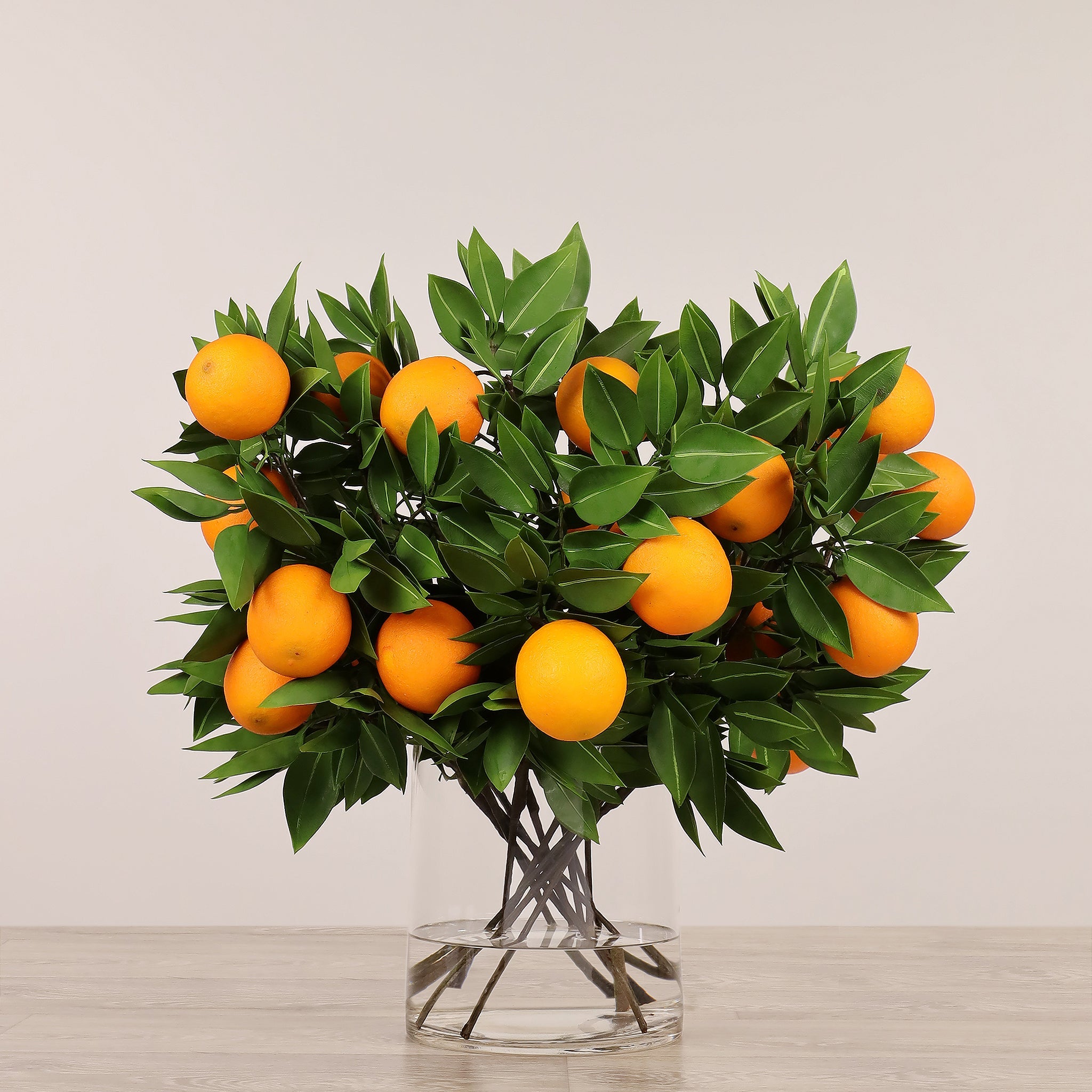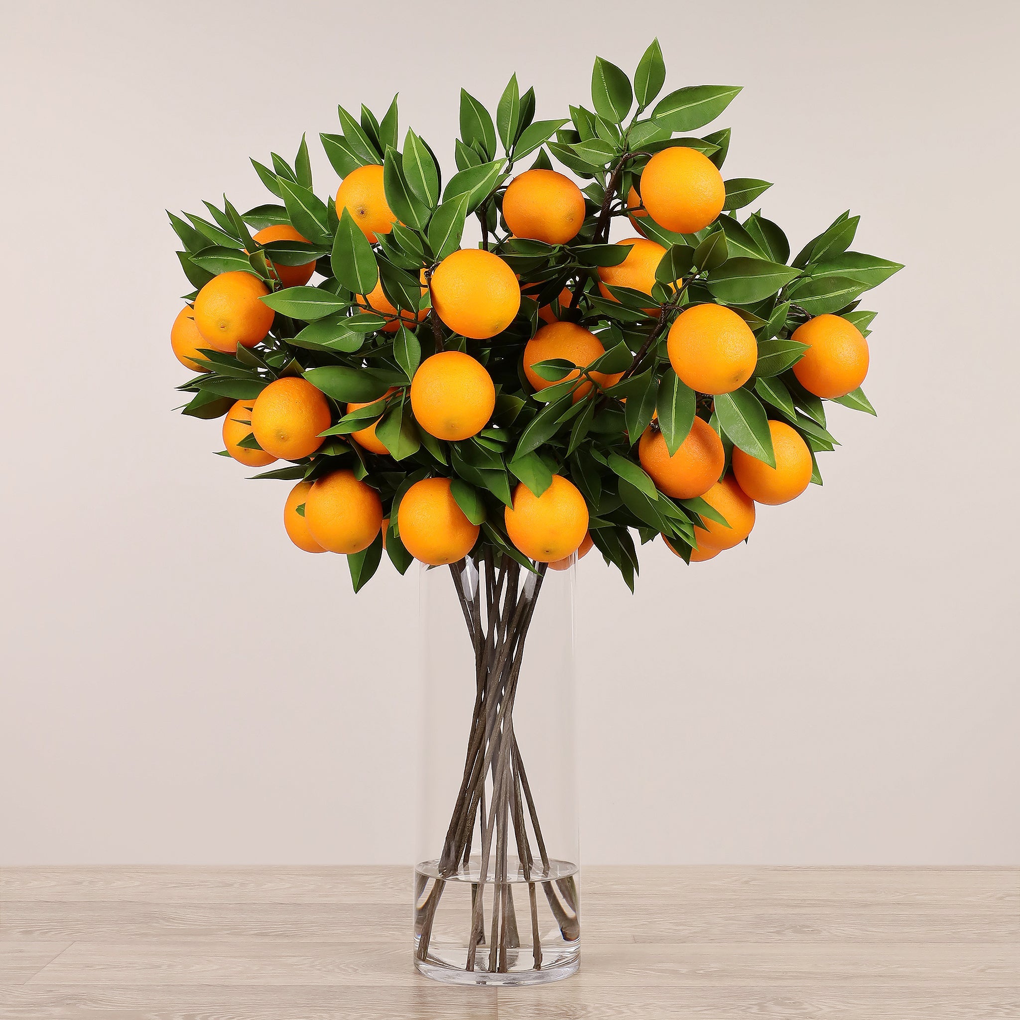 - أزهار برتقالية صناعية بمظهر واقعي تضفي حيوية بصريّة.