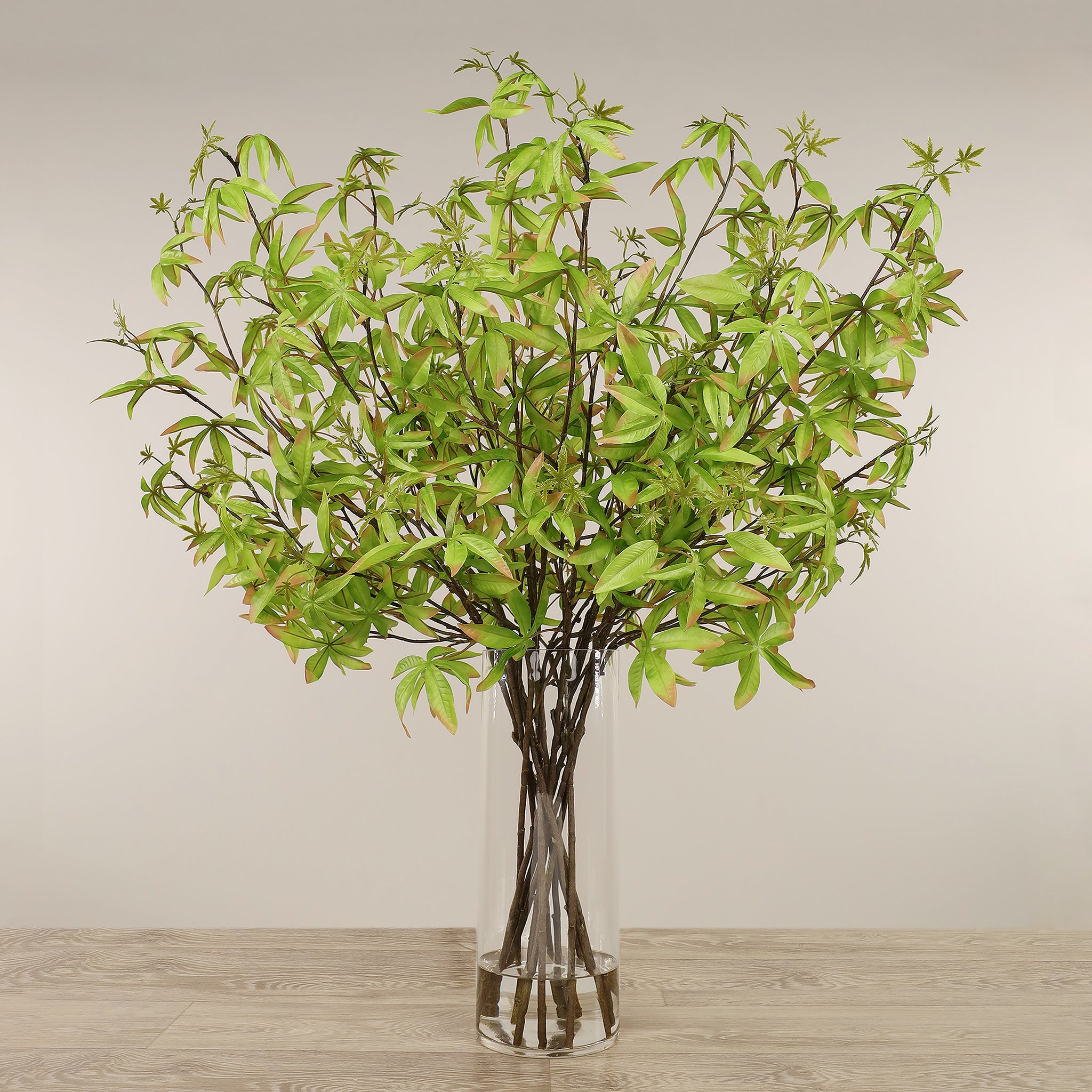 قطعة زخرفية أنيقة تجمع تشكيلة من نباتات القفزات الاصطناعية المصممة لإضفاء لمسة من الجمال الطبيعي على أي مساحة دون عناء. تمتاز الأوراق الخضراء الغنية والتفاصيل الدقيقة بواقعية واضحة، وتم ترتيب كل ساق بعناية للحصول على مظهر متوازن وجذاب. وضعت التشكيلة داخل مزهرية زجاجية رفيعة تضفي طابعاً عصرياً وراقياً على الديكور، لتمنح المكان إشراقة منعشة بسهولة ودون احتياج لصيانة مستمرة.