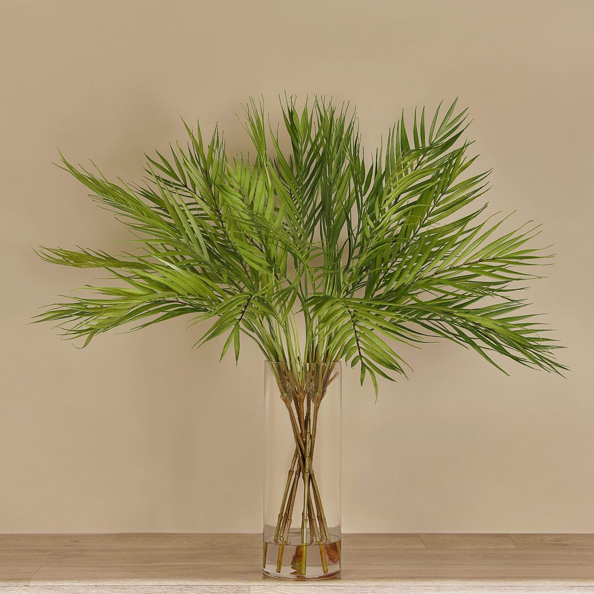 أضف نفحة استوائية أنيقة إلى أي مكان مع باقة من أغصان النخيل الاصطناعية المطابقة للواقع، مرتبة داخل مزهرية زجاجية شفافة تحتوي على ماء اصطناعي يكمّل المظهر الطبيعي. كل غصن مصنوع بعناية بتفاصيل دقيقة — من السعف الأخضر النابض بالحياة إلى ملمس السيقان المتقن — ليمنح مساحتك إطلالة طبيعية دون عناء العناية اليومية.