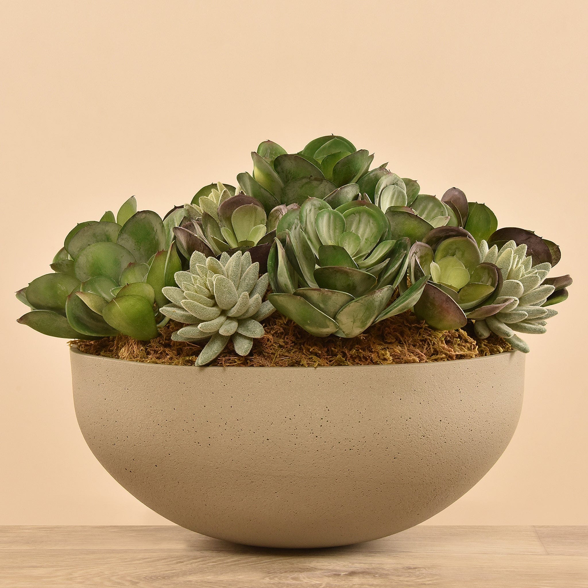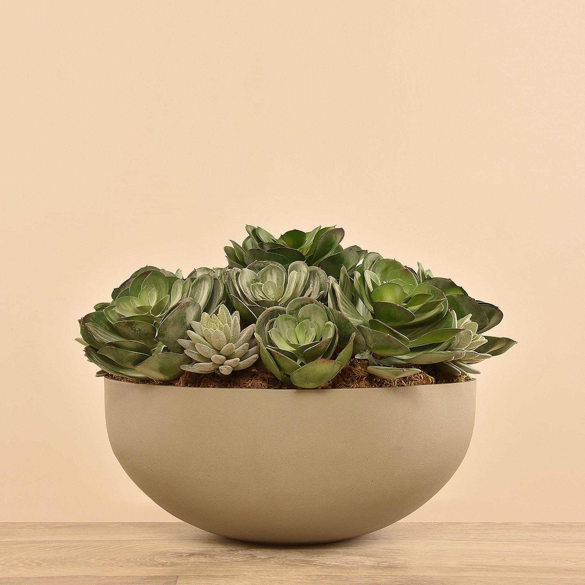 حوّل أي ركن في منزلك أو مكتبك إلى واحة هادئة وجذابة مع هذا التنسيق من النباتات العصارية الصناعية. تم تنسيقه يدويًا بواسطة خبراء، ويُظهر مظهرًا طبيعياً وأوراقًا خضراء جميلة متناسقة مع وعاء عصري يضيف لمسة أناقة وتميز للمكان دون الحاجة إلى عناية مستمرة.