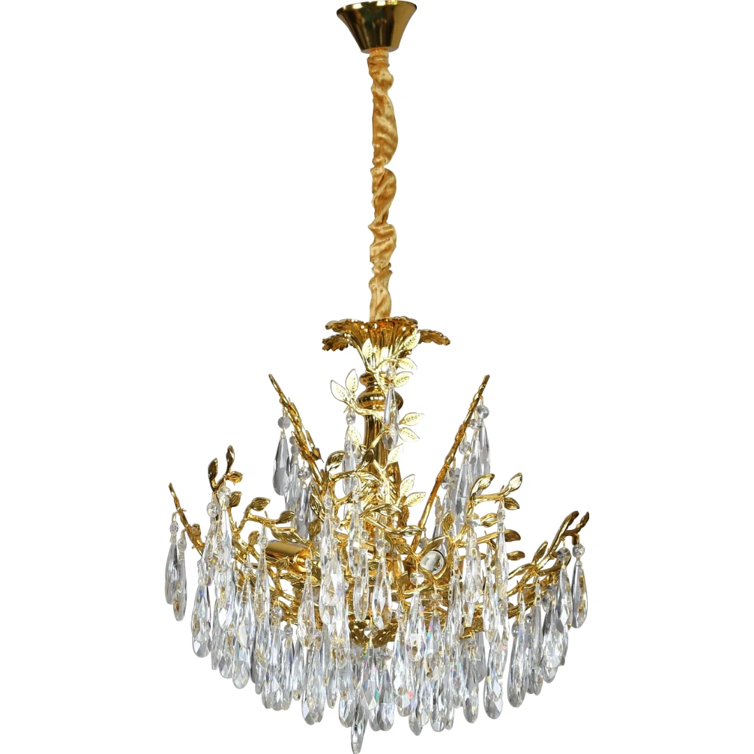 تفاصيل كريستالية أوروبية تبهر العين بانعكاس الضوء وتعزز أناقة المساحة. تصميم مودرن بلون ذهبي لامع يضفي طابعًا فخمًا ومعاصرًا في غرف المعيشة، سفرة الضيافة أو المدخل.