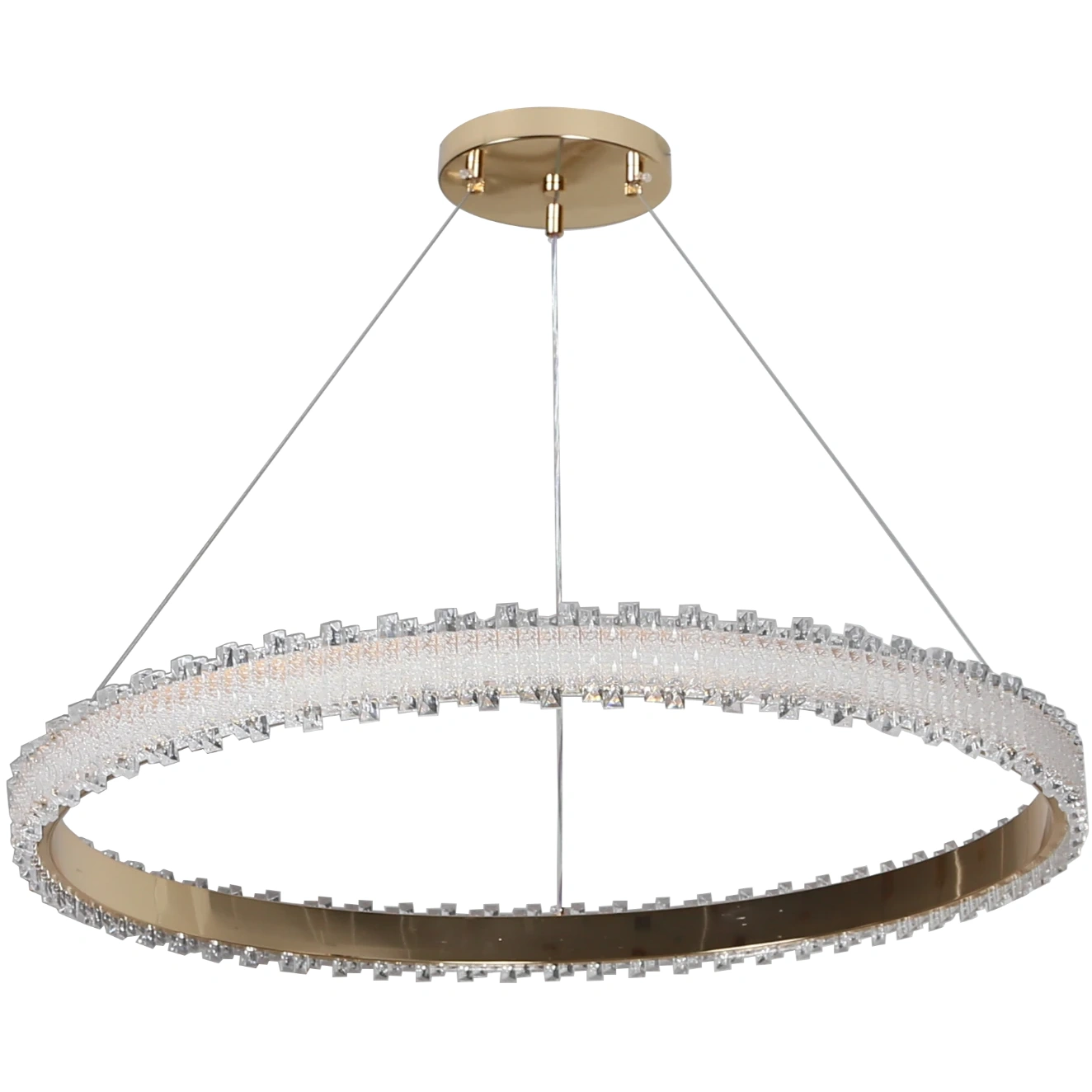 ثريا معلقة مودرن دائرية ذهبية — 3 أوضاع إضاءة، طول 80 سم، 60 واطثريا معلقة مودرن دائرية ذهبية — 3 أوضاع إضاءة، طول 80 سم، 60 واط