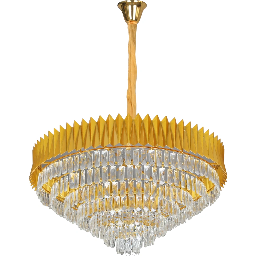 علاقي مودرن ذهبي بتصميم معاصر ولون ذهبي لامع، مزوّد بقاعدة لمبة E14 لعدد 22 نقطة إضاءة ومقاس إجمالي 1000 ملم. ينساب التصميم الكريستالي/الزجاجي مع الإطار الذهبي ليخلق توازنًا بين البريق والرقي، مناسب لغرف المعيشة، الصالونات، المطاعم وغرف الاجتماعات.