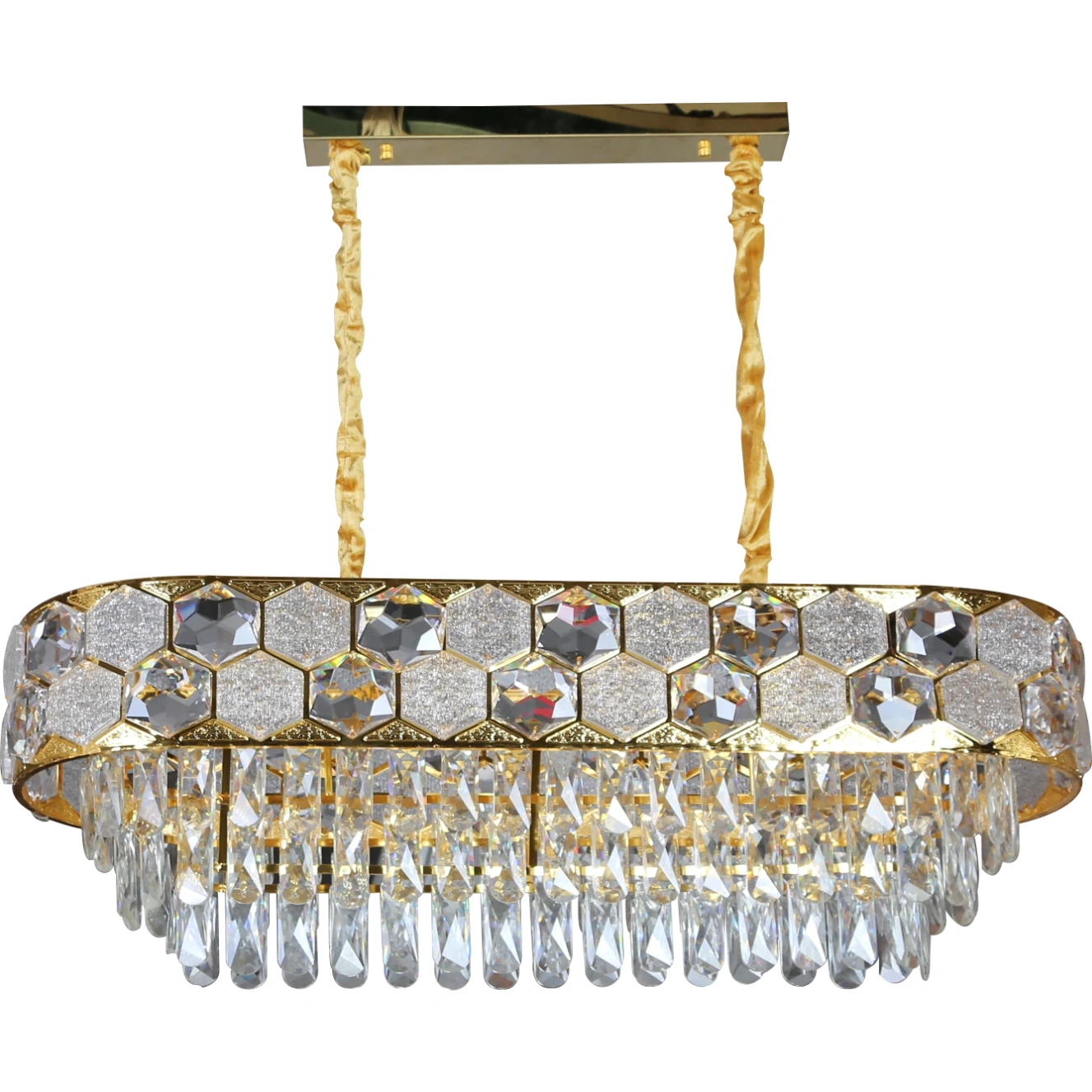 علاقي مودرن بلمسة ذهبية مع تفاصيل كريستالية راقية، يجمع بين التصميم العصري والأناقة الكلاسيكية. تصميمه الطويل والعريض (1000 × 350 ملم) يمنح توزيع إضاءة متوازن ويبرز كسِمة مركزية داخل الغرفة.