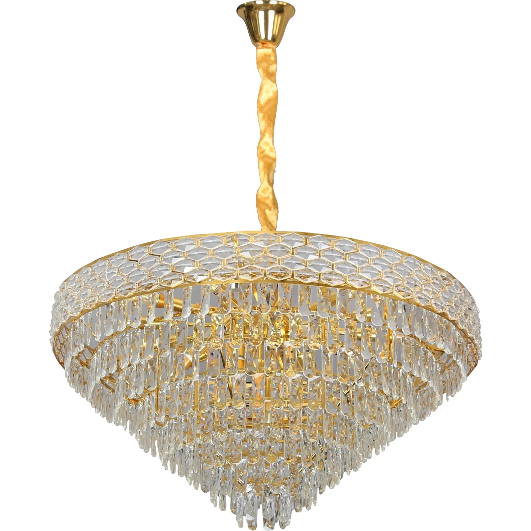 - المواد: هيكل معدني مع قطع كريستال أوروبية عالية الجودة
