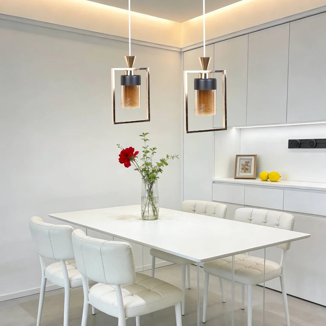 مصباح معلق مفرد بتصميم عصري ولمسة نهائية ذهبية أنيقة — خيار مثالي لإضافة لمسة ديكور راقية وإضاءة مركزة لغرف الطعام، الممرات، أو فوق المساحات العمل.