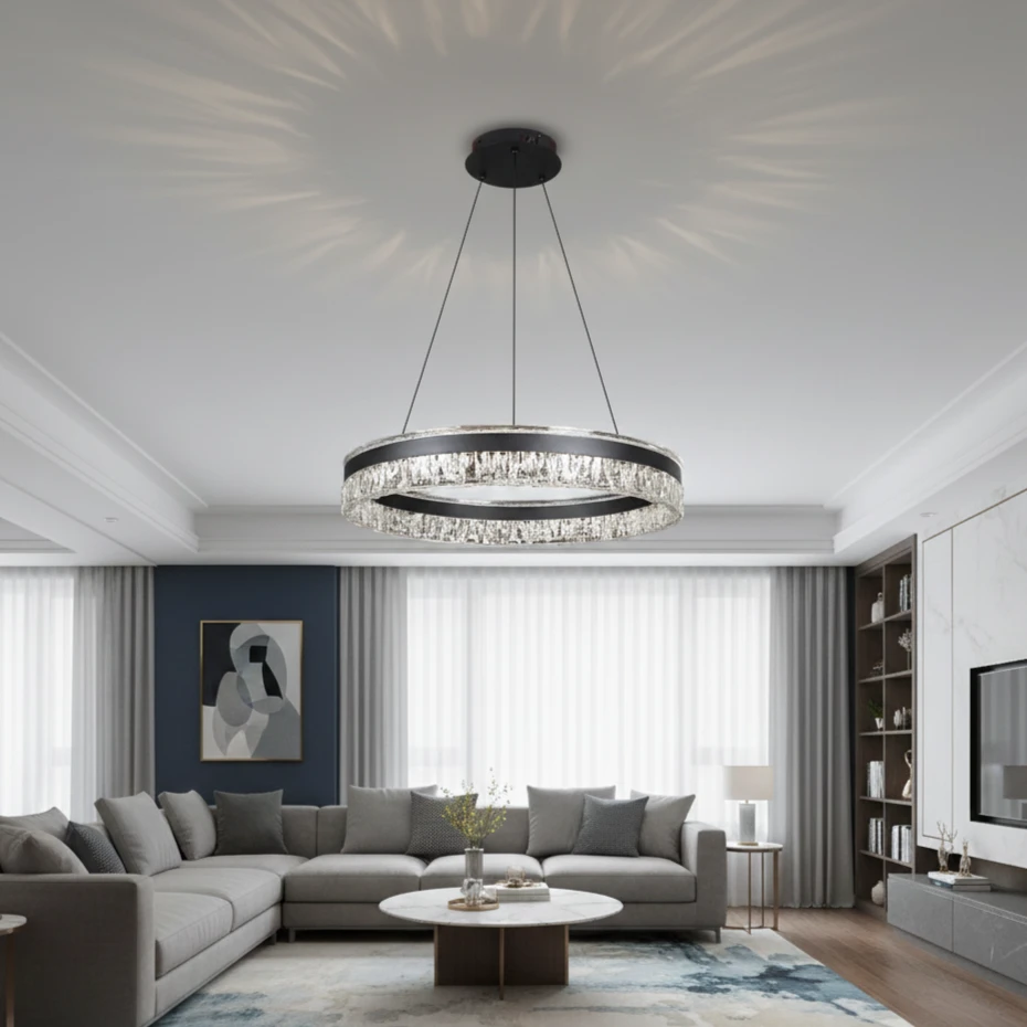 ثريا مودرن أنيقة تمنح المجلس أو غرفة المعيشة إحساسًا بالفخامة والرحابة. تصميم معلق بعناية يعيد الحياة للمكان بلمسة معاصرة وإضاءة قابلة للتغيير تناسب جميع الأجواء.