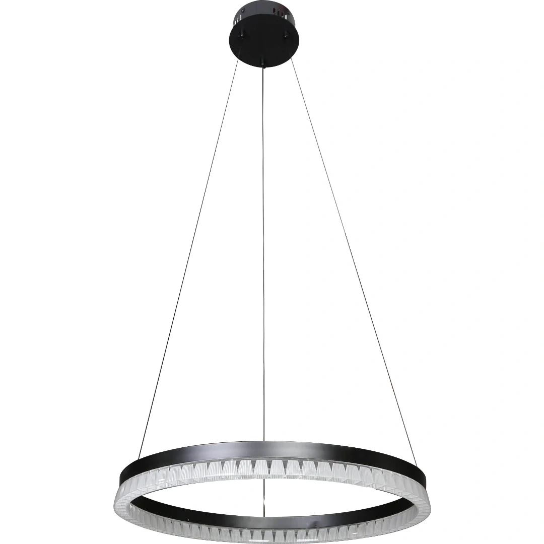 مصباح معلّق على شكل حلقة بلون أسود مطفي، مزوّد بمصدر ضوئي LED مدمج يقدم 3 أوضاع إضاءة (دافئ، محايد، بارد) لتناسب أجواء المنزل أو المكتب. تصميم رفيع يضيف لمسة ديكور راقية ويوفّر توزيع ضوء متساوٍ وفعّال.