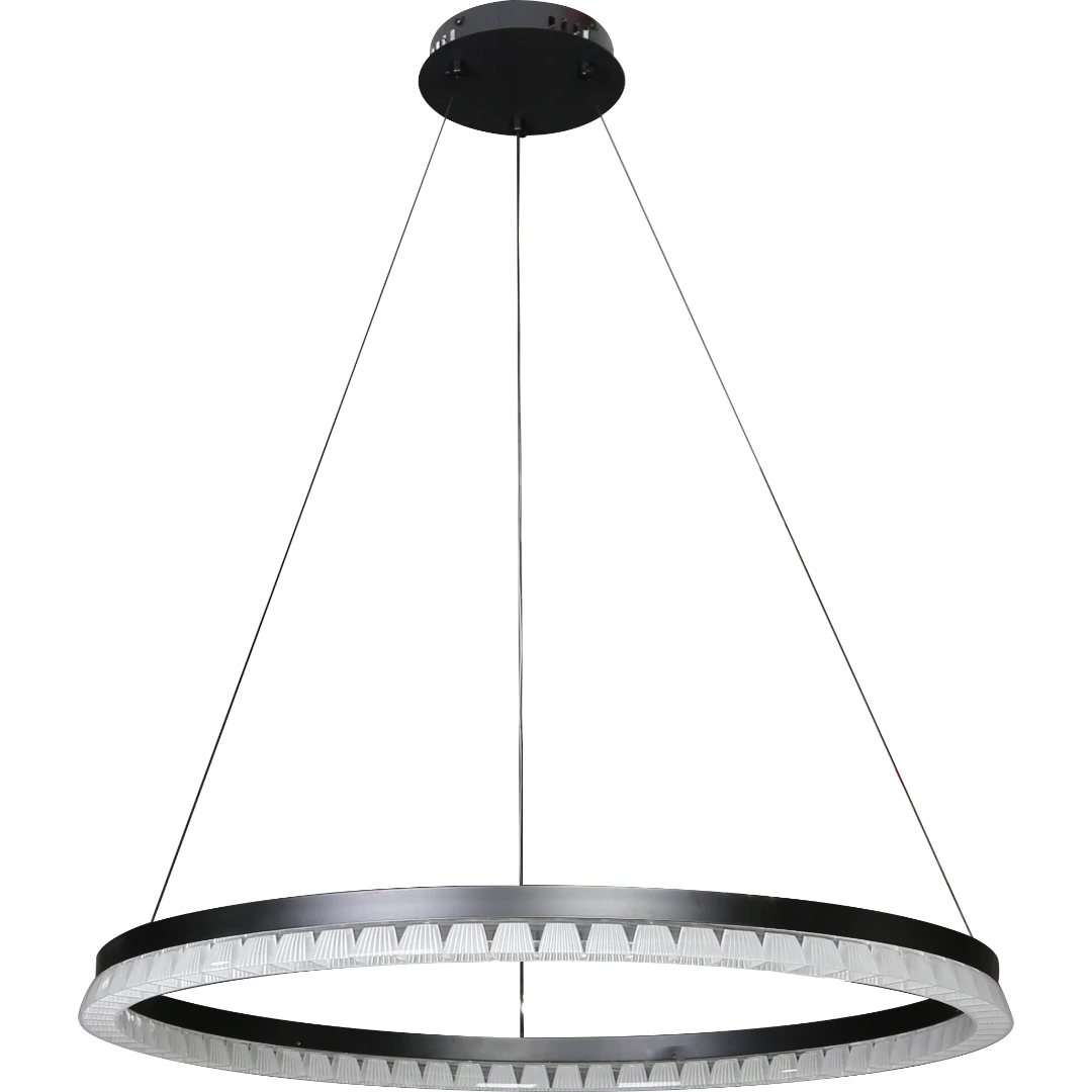 معلّق مودرن على شكل حلقة باللون الأسود، يوفر إضاءة متوازنة وعصرية لمساحات المعيشة أو العمل. يضم ثلاث أوضاع إضاءة ويعمل بطاقة إجمالية 55 واط، بقطر حلقة 80 سم لغطاء إضاءة واسع وأنيق.