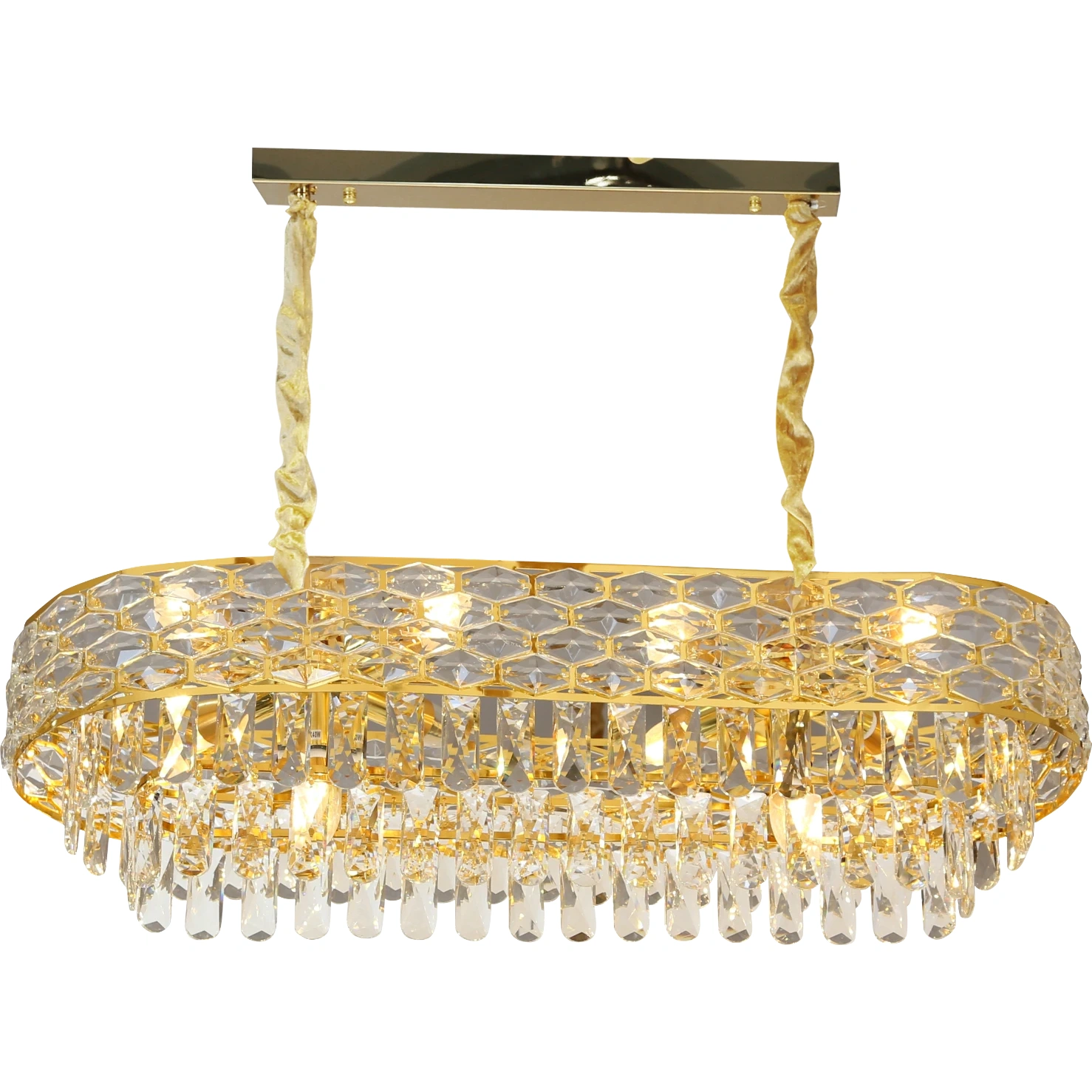 علاقي مودرن ذهبي مصنوع من معدن مطلي باللون الذهبي مع قطع كريستال أوروبي تعكس الضوء بانكسارات جميلة تمنح الغرفة أجواءً راقية ودافئة. تصميم مناسب للصالات وغرف الطعام والصالونات الفاخرة، يجمع بين البساطة واللمسة الفخمة.