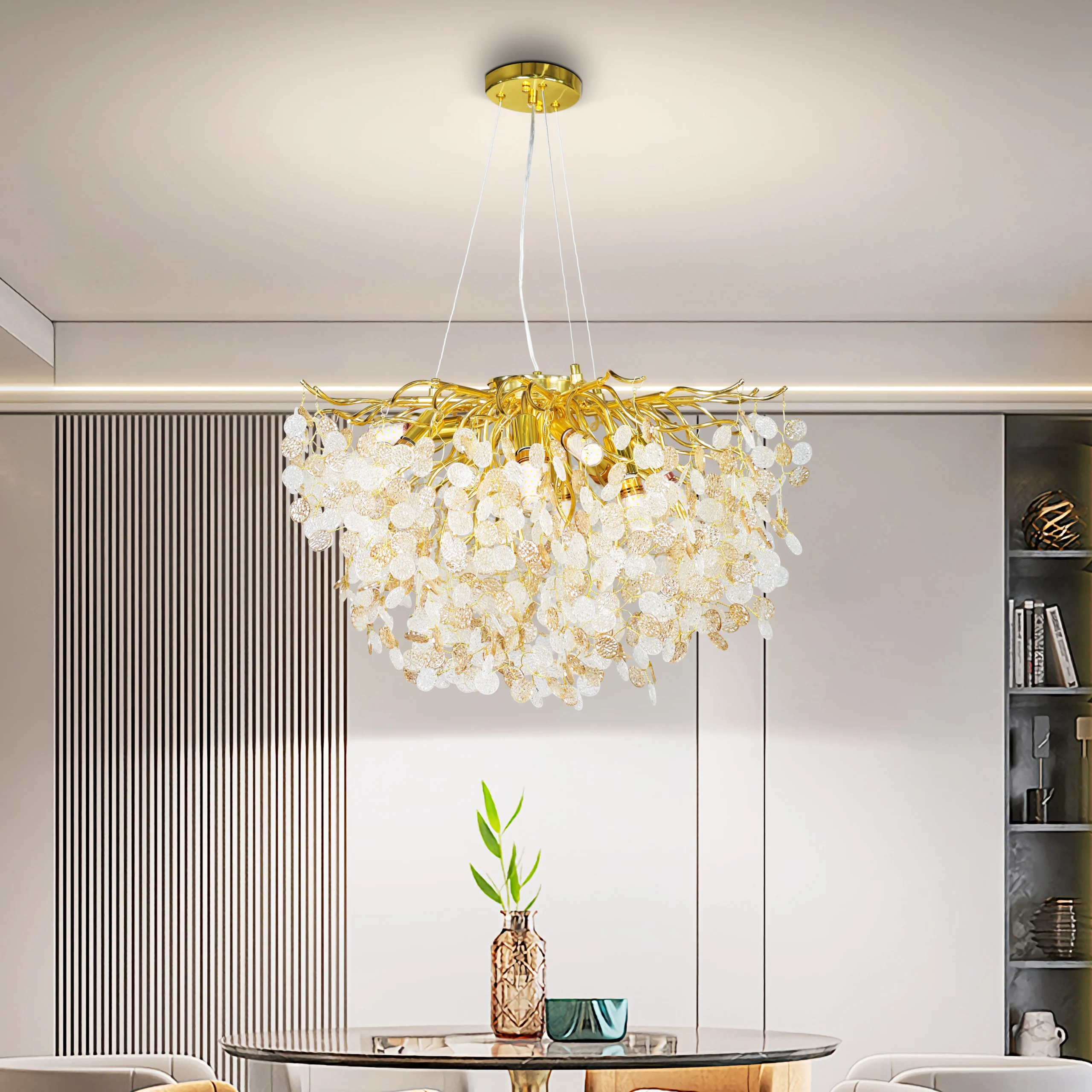 - اللون والتشطيب: هيكل ذهبي مع قباب زجاجية عسلي شفافة