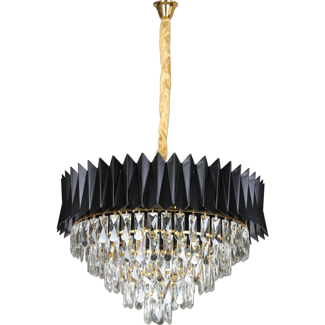 بريق الكريستال الأوروبي يمنح أي مساحة إشراقًا واحترافيةً لا مثيل لها، مع لمسة مودرن أنيقة من الهيكل الأسود. تصميم هذا العلاقي يجمع بين الفخامة والبساطة ليكون خيارًا مثاليًا لغرف المعيشة، غرفة الطعام أو المدخل.
