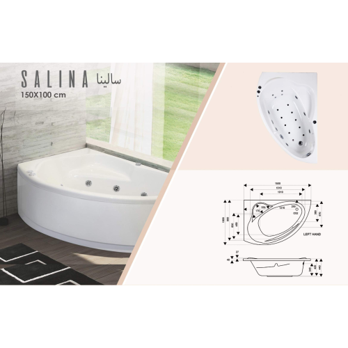 - حوض جاكوزي زاوية سالينا 150×100 سم