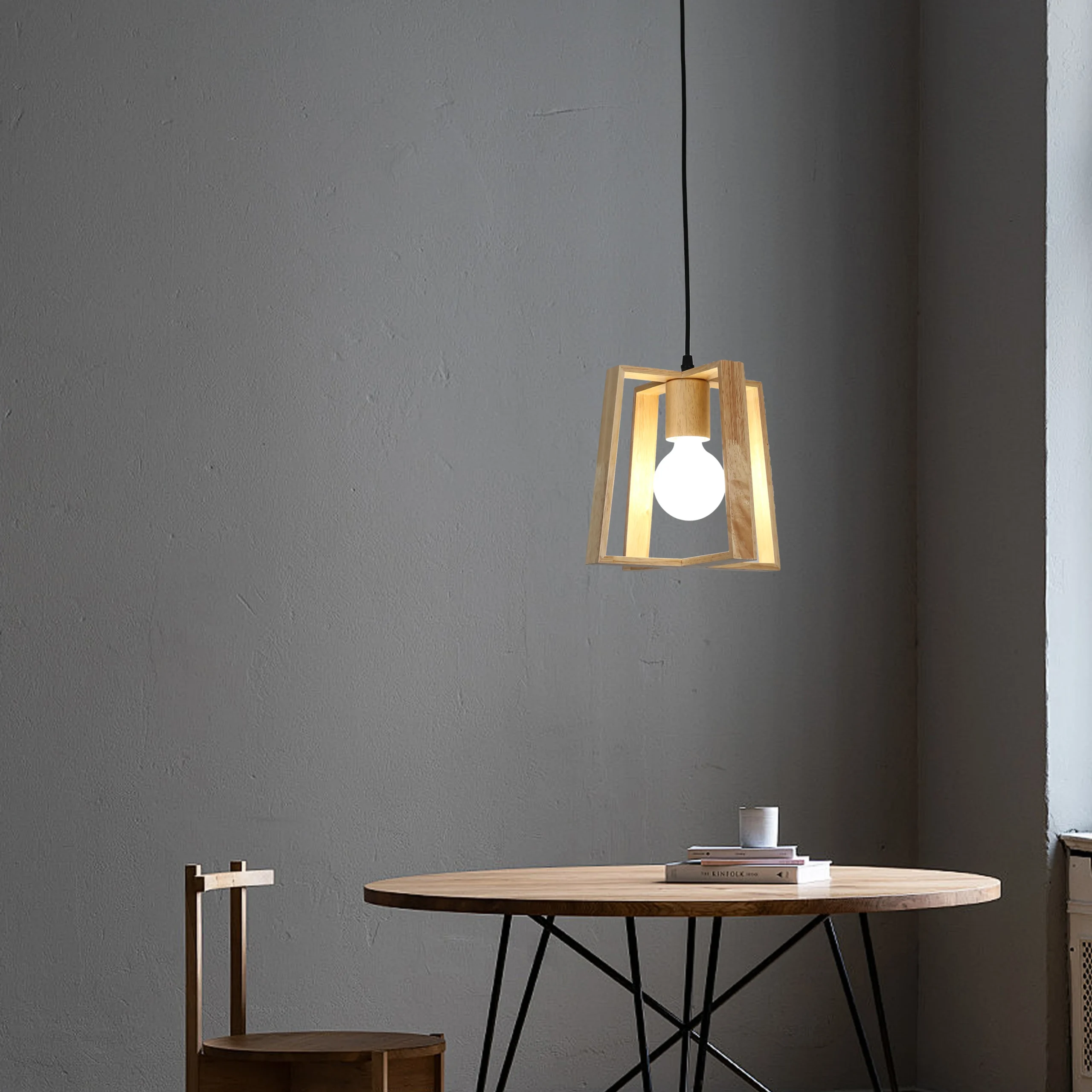 مصباح معلق يجمع بين الخشب والحبال بتصميم مستوحى من حبال الأدغال — خيار مثالي لمن يبحث عن إضاءة ديكورية عصرية بطابع ريفي/صناعي. يناسب المساحات المنزلية والمقاهي والمحلات التي تريد لمسة جمالية وحركة بسيطة للضوء.