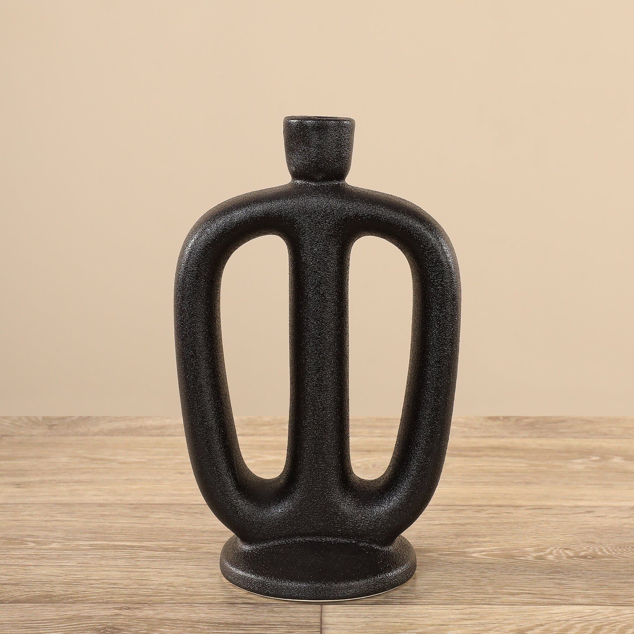 أضف لمسة من الرقي والدفء إلى منزلك مع هذا الحامل الأنيق للشموع الرفيعة. مصنوع من السيراميك بعناية، يجمع بين قاعدة ثابتة وتصميم انسيابي منحوت يبرز بُعد الفخامة والبساطة في آن واحد.