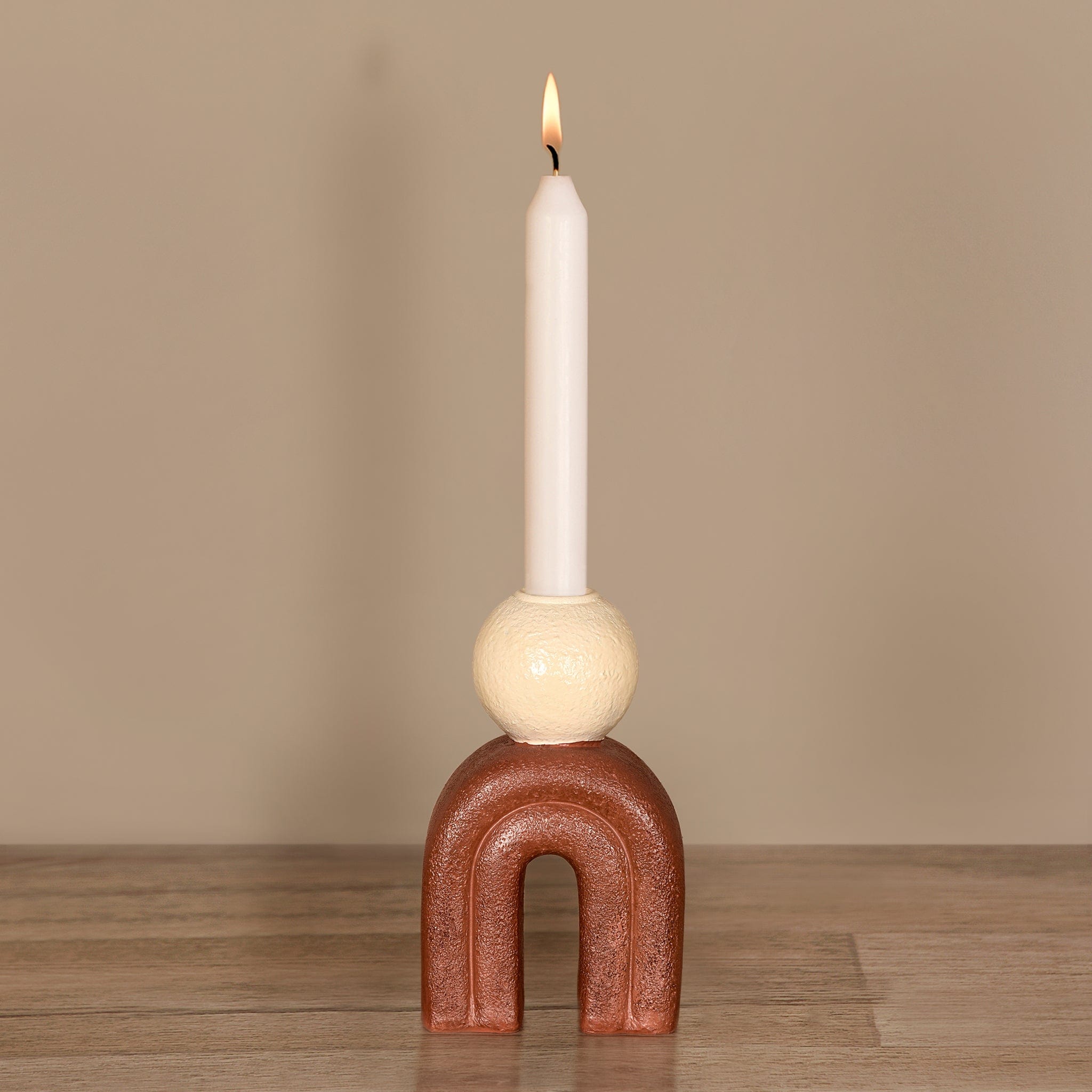 حامل شموع أنيق بتشطيب يدوي يضيف لمسة فنية ساحرة إلى أي مساحة. ألوانه المحايدة — الشوكولاتة والأبيض — وتصميمه الرقيق يجعلان منه قطعة متعددة الاستخدامات تناسب أنماط الديكور المختلفة من الأناقة الساحلية إلى الطراز العصري.