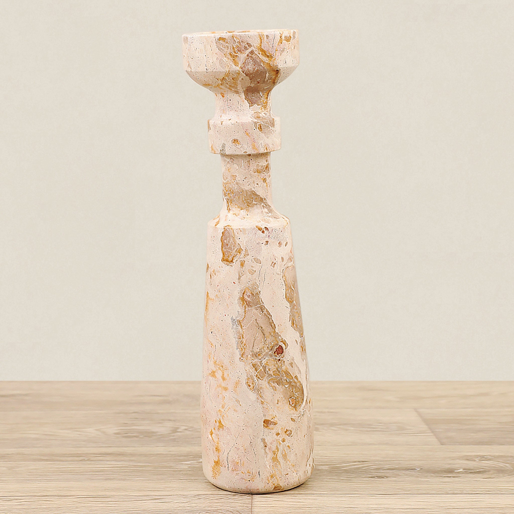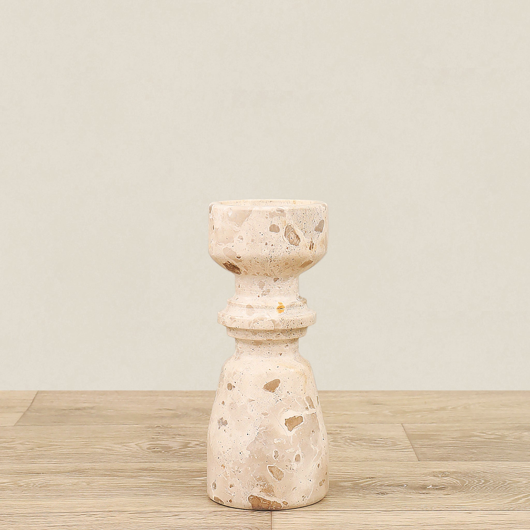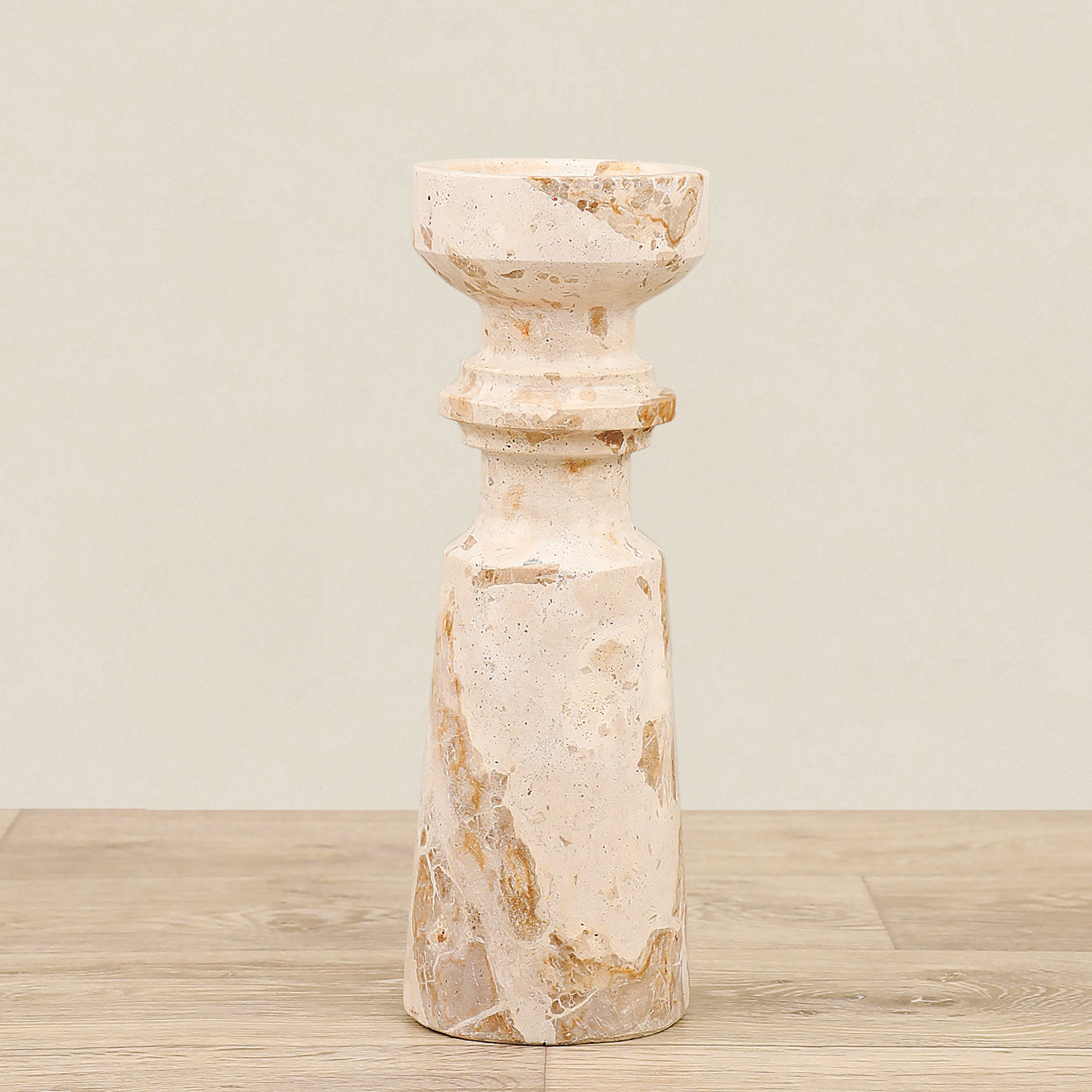• حامل شموع بتصميم خزفي أنيق مع تشطيب يدوي يضفي طابعاً فنياً.