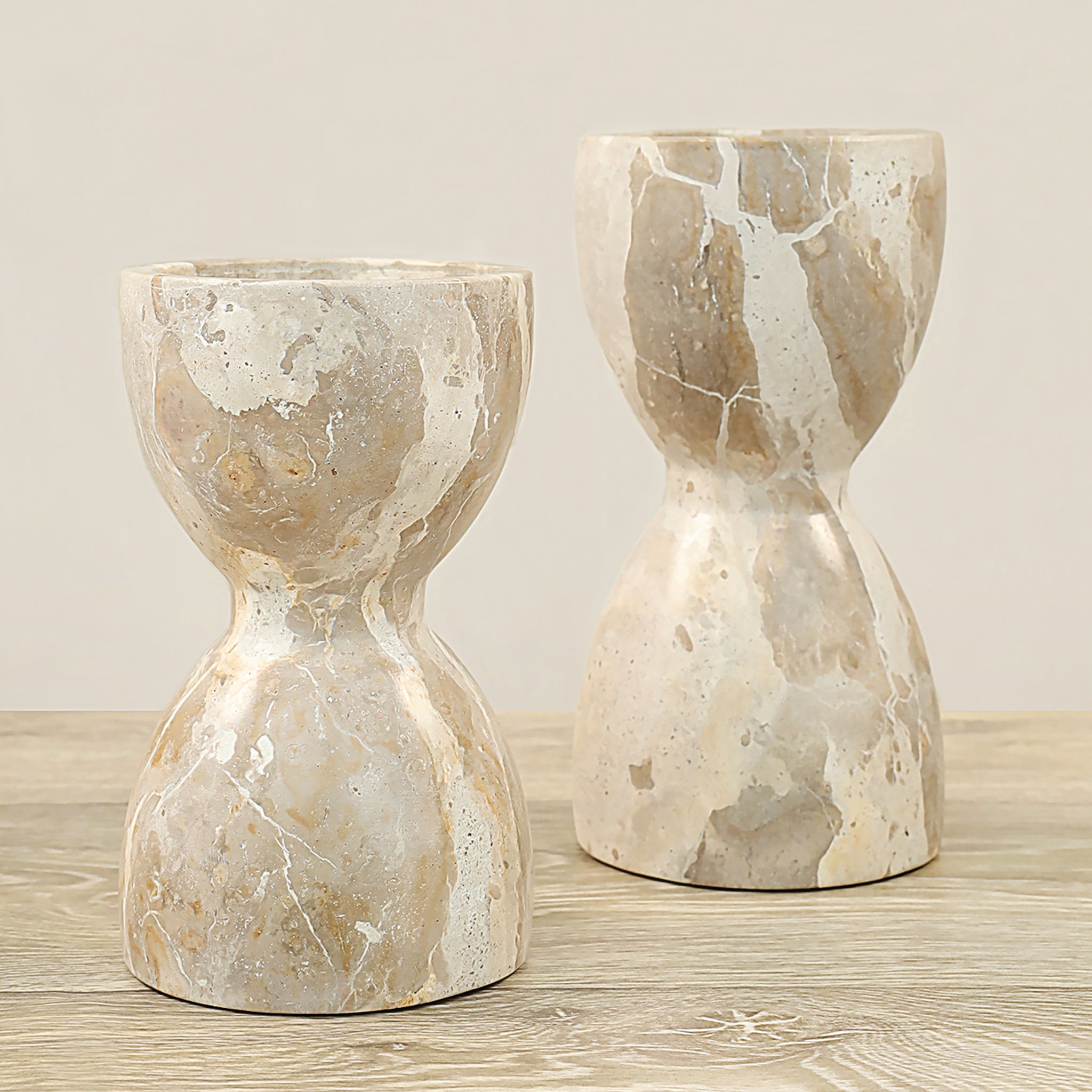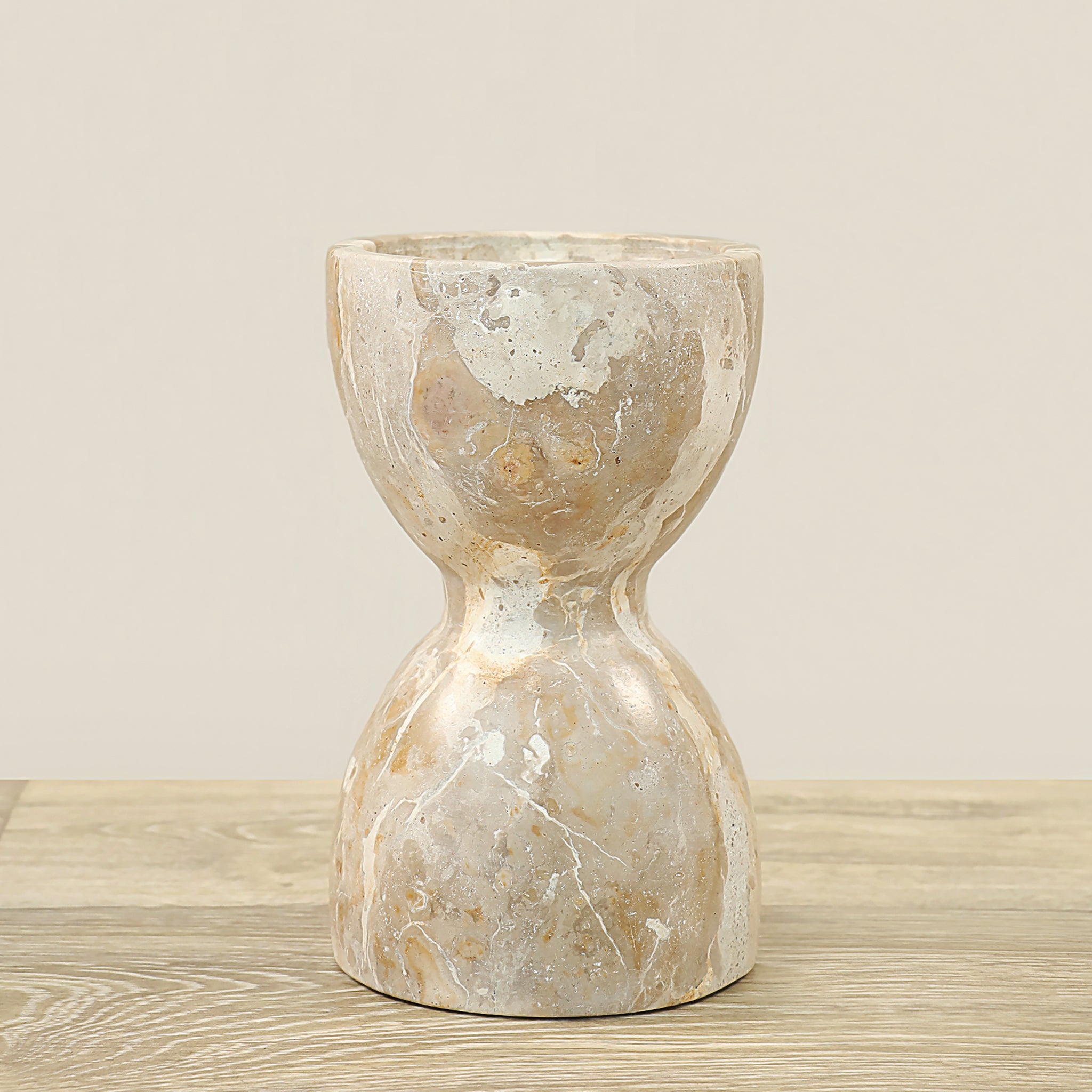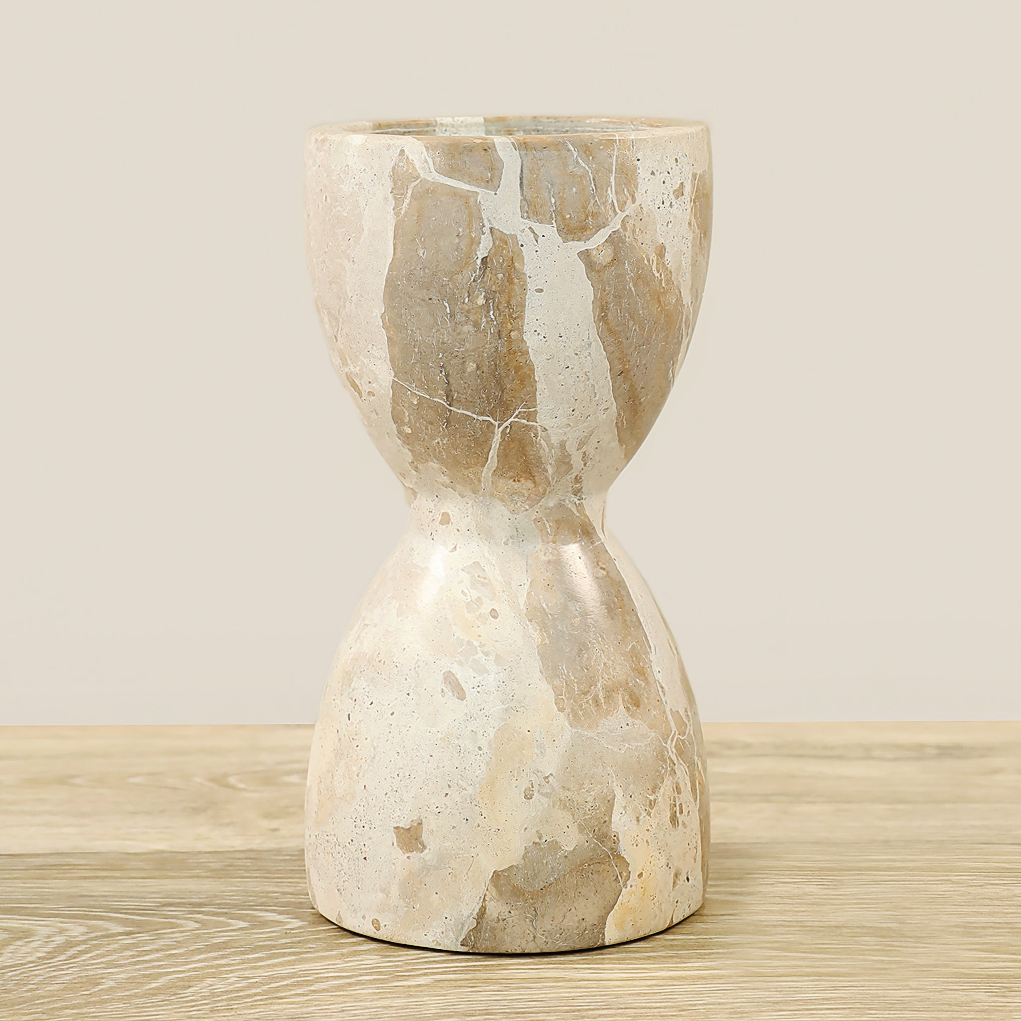 حامل الشموع الرخامي بتشطيب يدوي رائع، قطعة زخرفية تضفي لمسة أنيقة وساحرة على أي مساحة داخلية. تتميز عروقه الطبيعية وتصميمها الأنيق بقدرتها على التكيّف مع أنماط ديكور متعددة، من الطراز الشاطئي الهادئ إلى الديكور العصري المترف. مثالي كقطعة مركزية على طاولة الطعام، لعرض على الرفوف، أو كإضافة زخرفية مميزة تُضفي أجواء هادئة وراقية عندما تتلألأ الشموع.