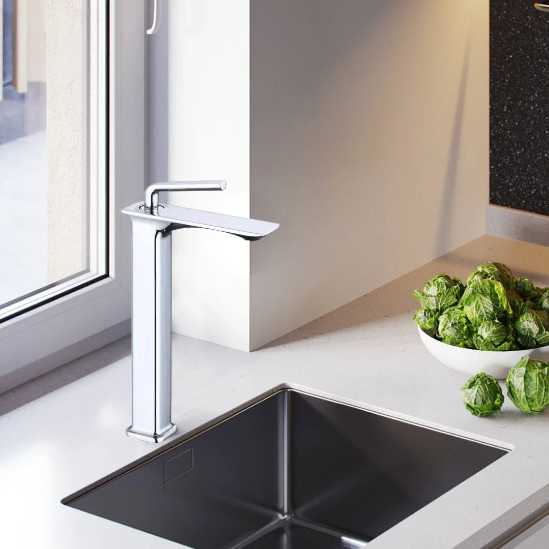 خلاط مغسلة طويل مربع رأس مدور كروم مع ليات