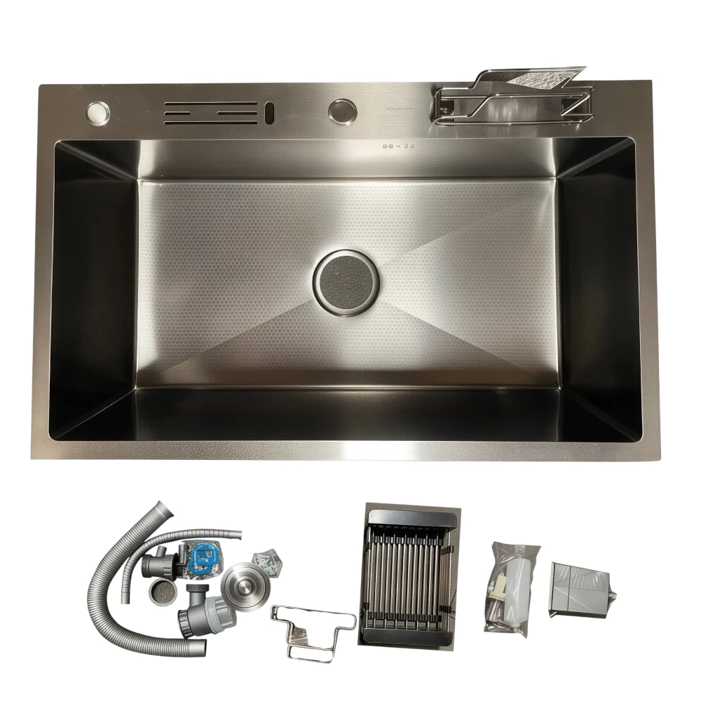 مجلى مطبخ مودرن بحوض واحد واسع، مصمم لتحمّل الاستخدام اليومي المكثف في المطابخ العصرية. مصنوع من استيل بنظام نانو يمنح سطح الحوض مقاومة عالية للبقع والرطوبة والخدوش والصدأ، مع مظهر لامع يسهل المحافظة عليه ويطيل عمر المنتج.