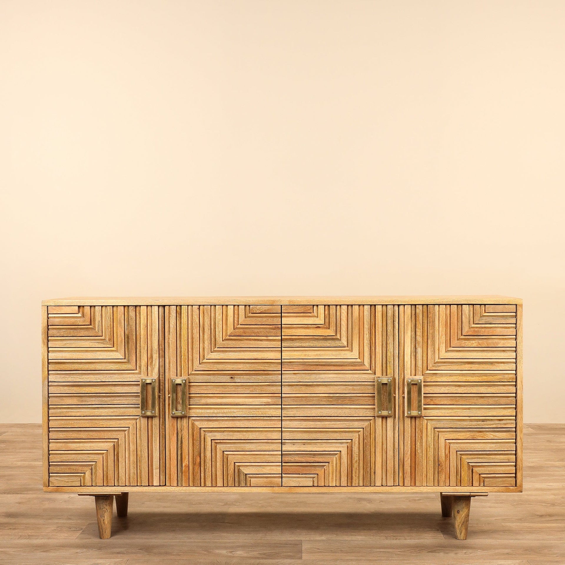 خزانة جانبية أنيقة مصنوعة من الخشب، تصميم عملي يوفر مساحات تخزين إضافية مع مظهر دافئ وطبيعي يناسب مختلف أنماط الديكور.