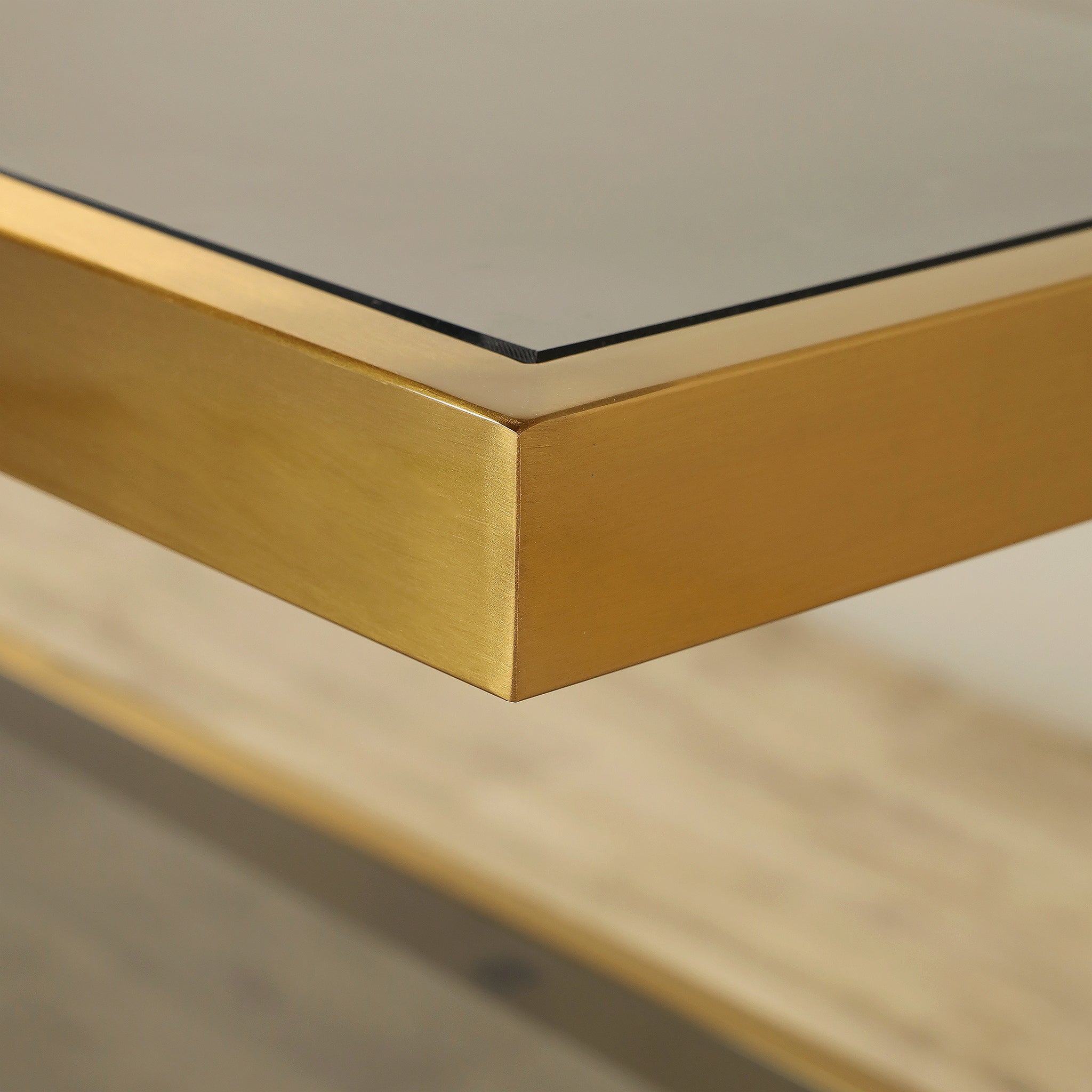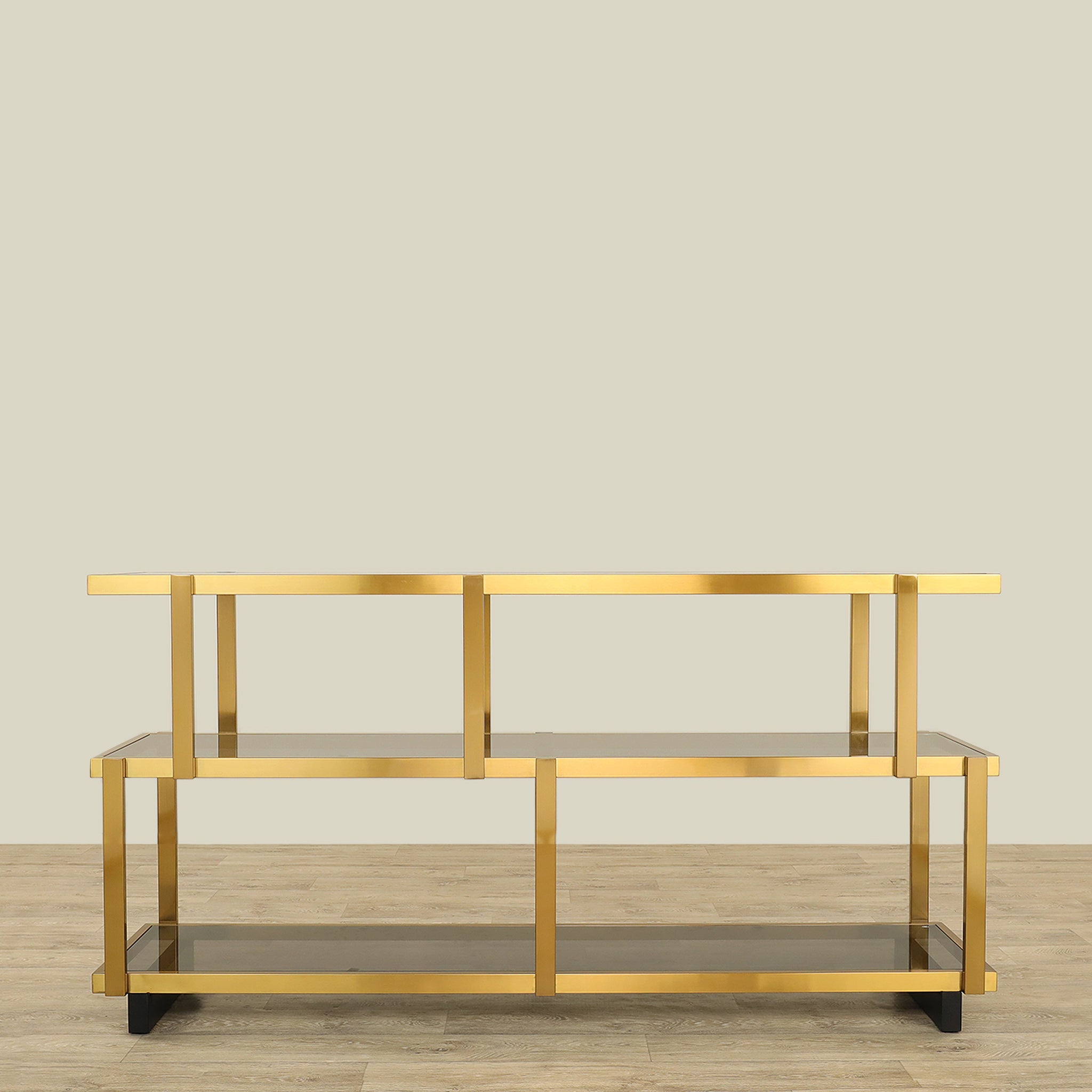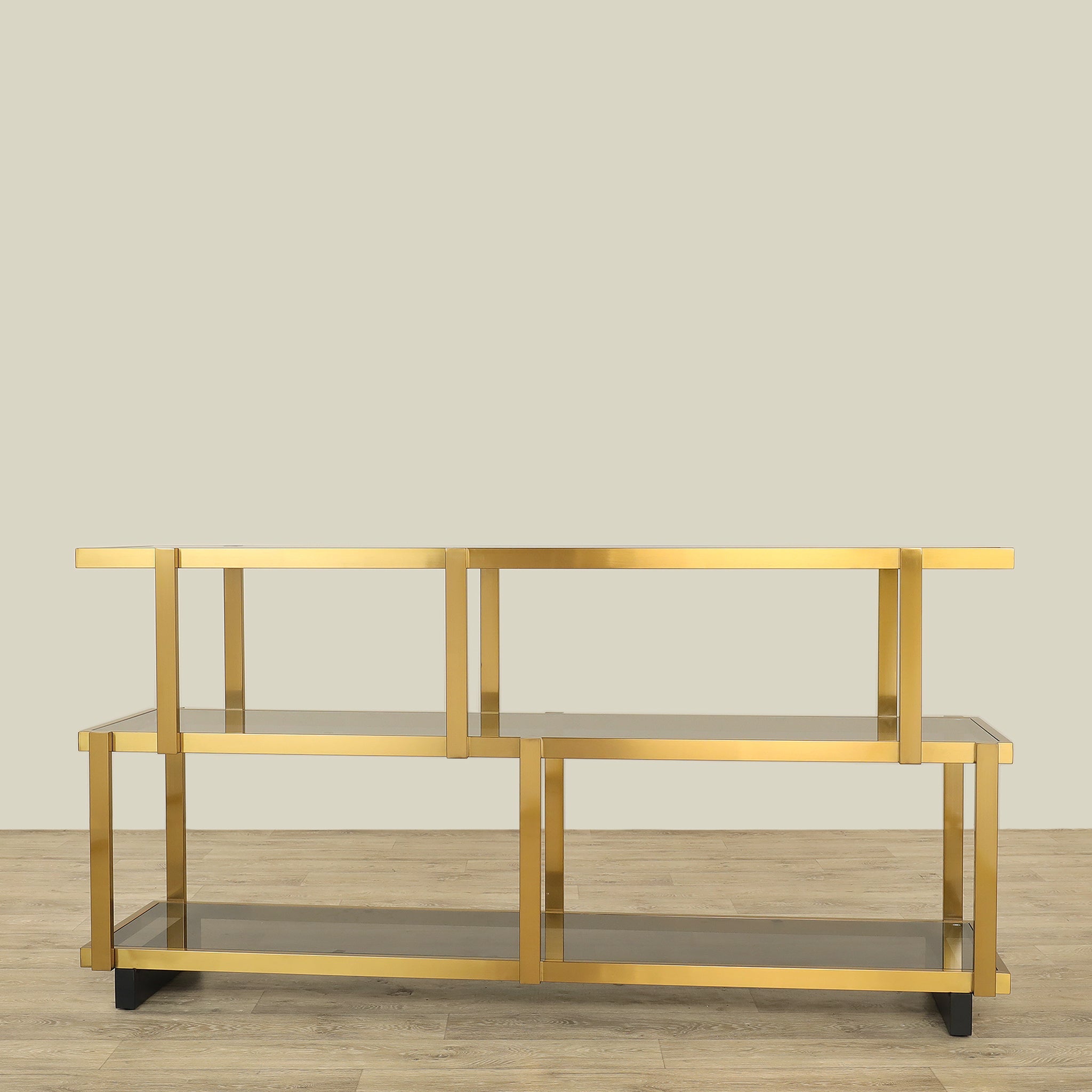 وحدة عرض أنيقة وعملية بلون ذهبي أنيق، تجمع بين متانة المعادن ونقاء الزجاج لتقديم قطعة عرض مميزة تتكامل مع مختلف أساليب الديكور.