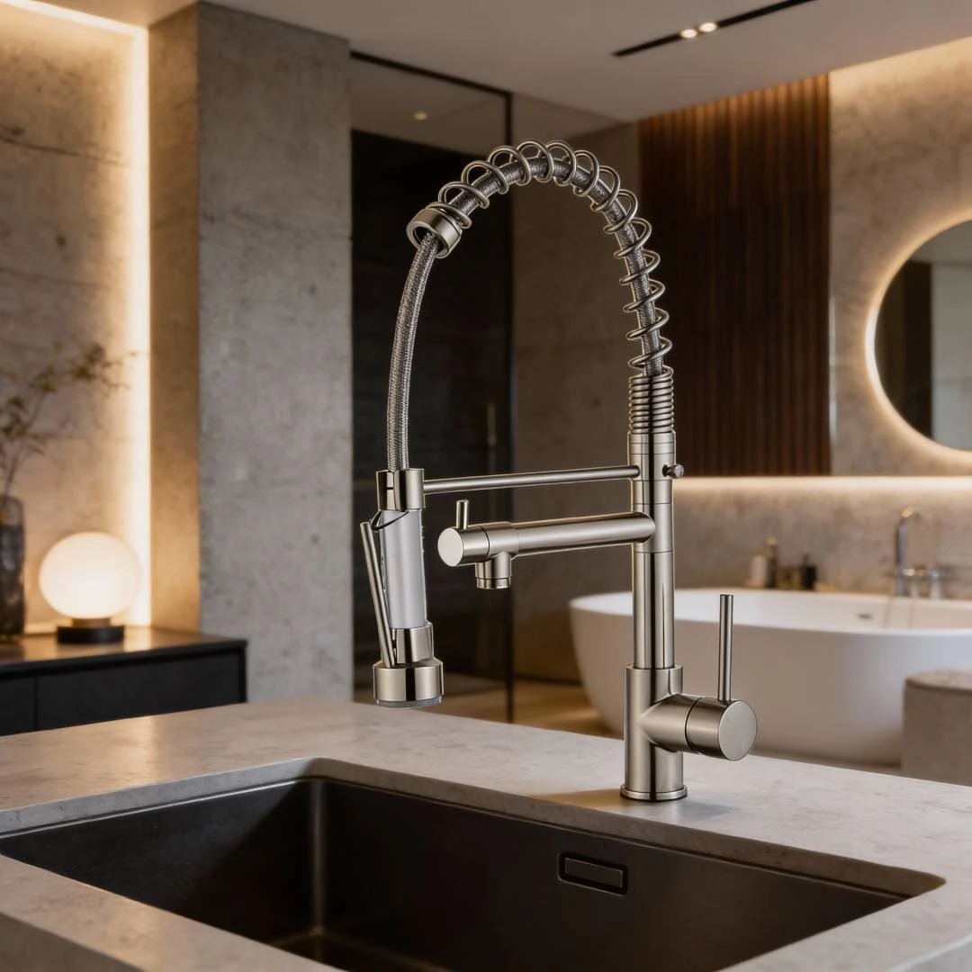خلاط مجلى بتشغيل سلس يمنحك تحكماً ناعماً عند فتح وإغلاق الماء، بتصميم عملي ومظهر فضي أنيق يناسب مختلف المطابخ.