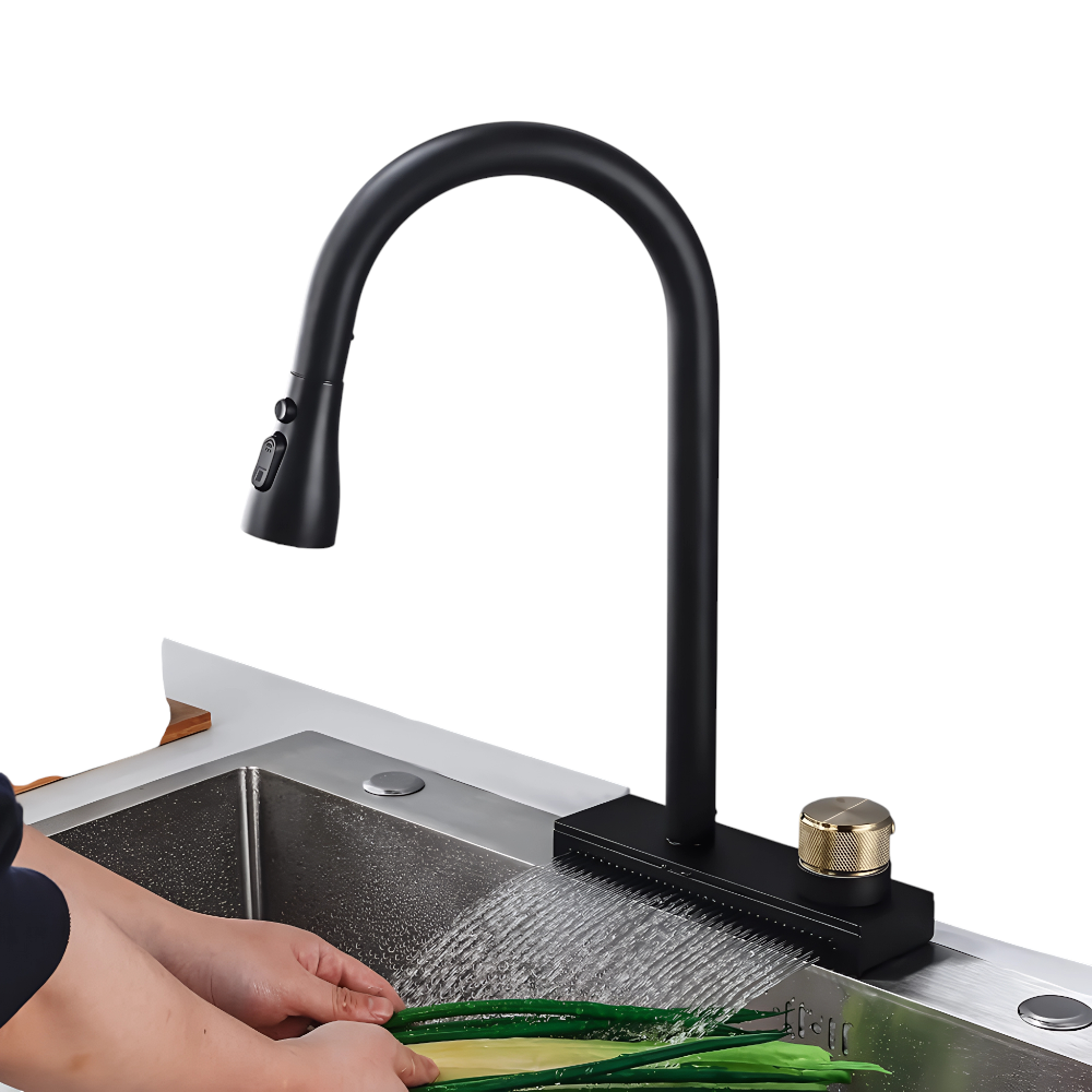 - تدفق شلالي فاخر: فوهة مصممة لتوليد تيار ماء سلس يشبه الشلال، لمعالجة مريحة ومظهر جمالي.