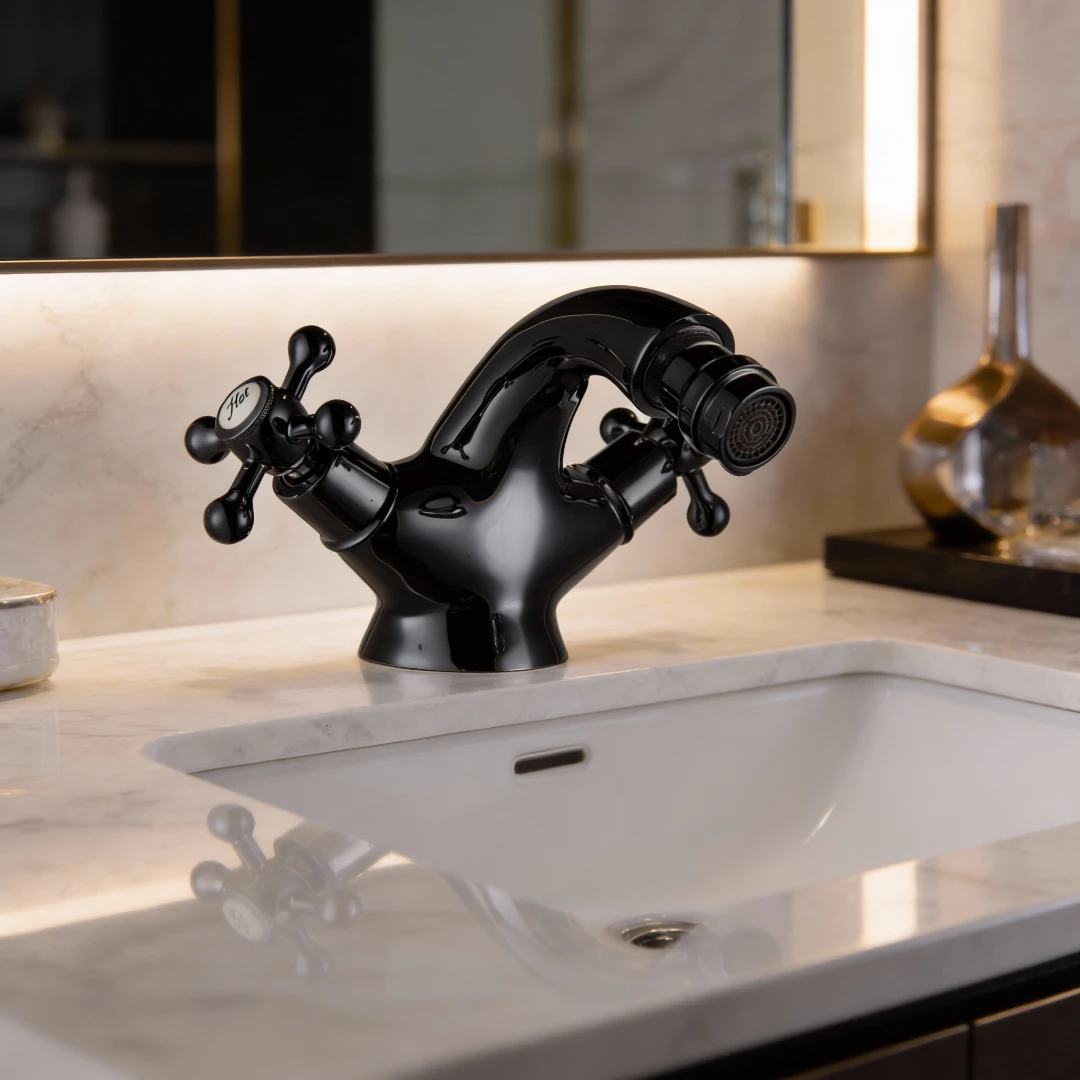 خلاط مغسلة تيتو بتصميم كلاسيكي — أسود لامع (كروم)