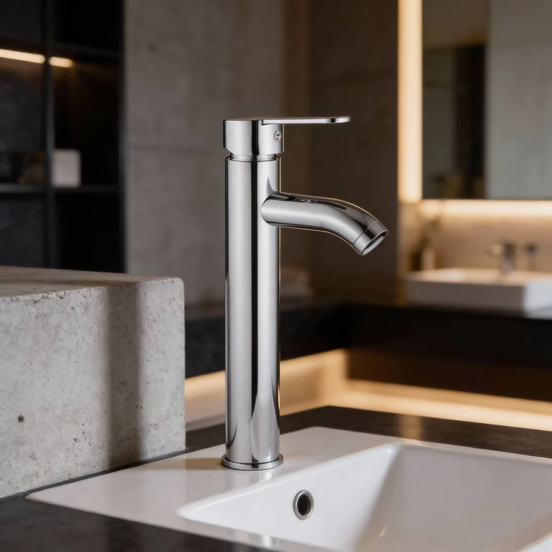 خلاط مغسلة بتصميم عصري وأنيق بلمسة كروم لامعة يناسب حماماتك ومغاسلك بكل أناقة. يجمع بين طول ذراع عملي، رأس دائري أنيق، وجودة تصنيع عالية لتوفير تدفق ماء ثابت وتحكم سلس. مثالي لمن يبحث عن مظهر مدور وراقٍ مع أداء متين ومريح.