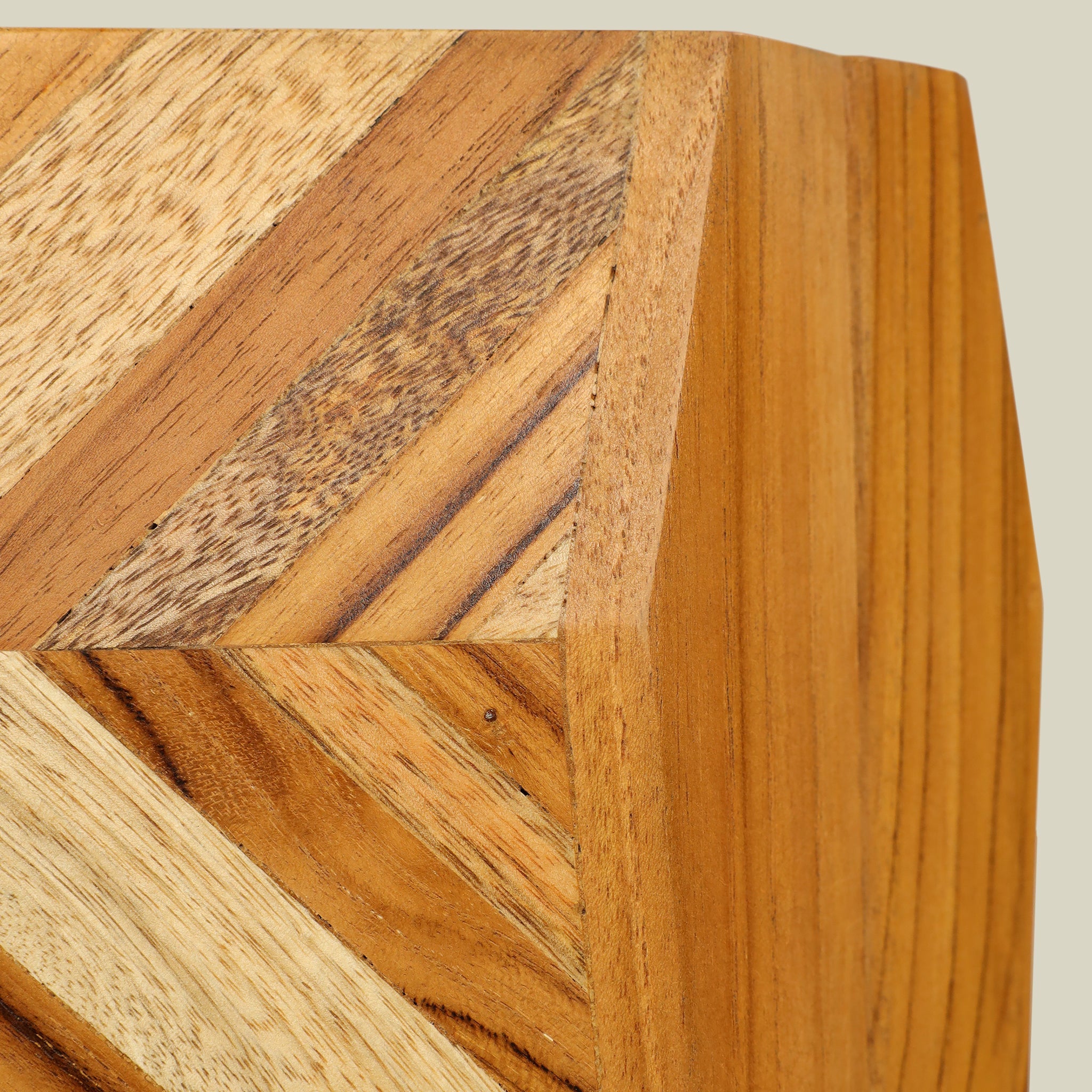 • خزانة جانبية خشبية بتصميم ثلاثي الأبعاد بنمط شيفرون يضفي جمالية بارزة.