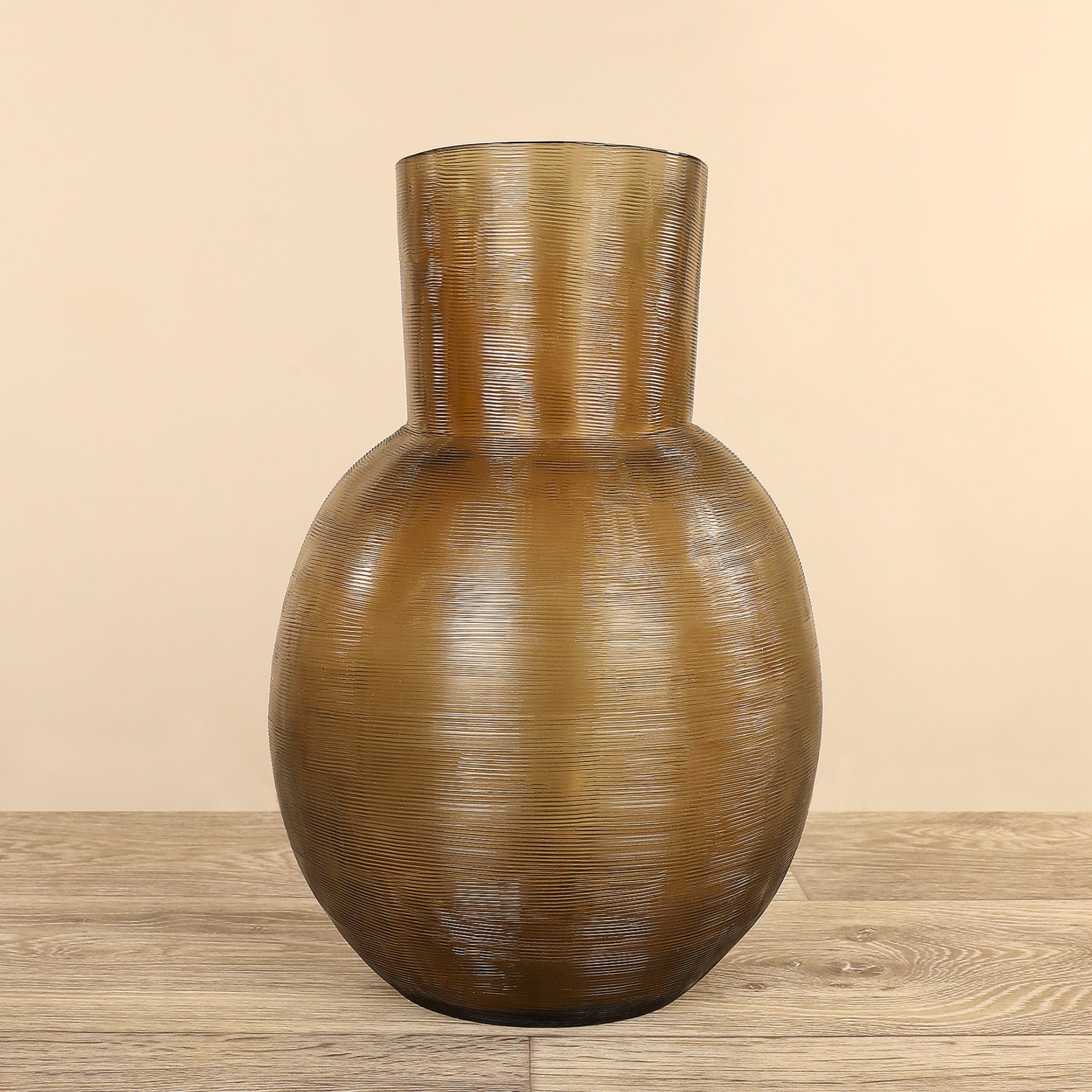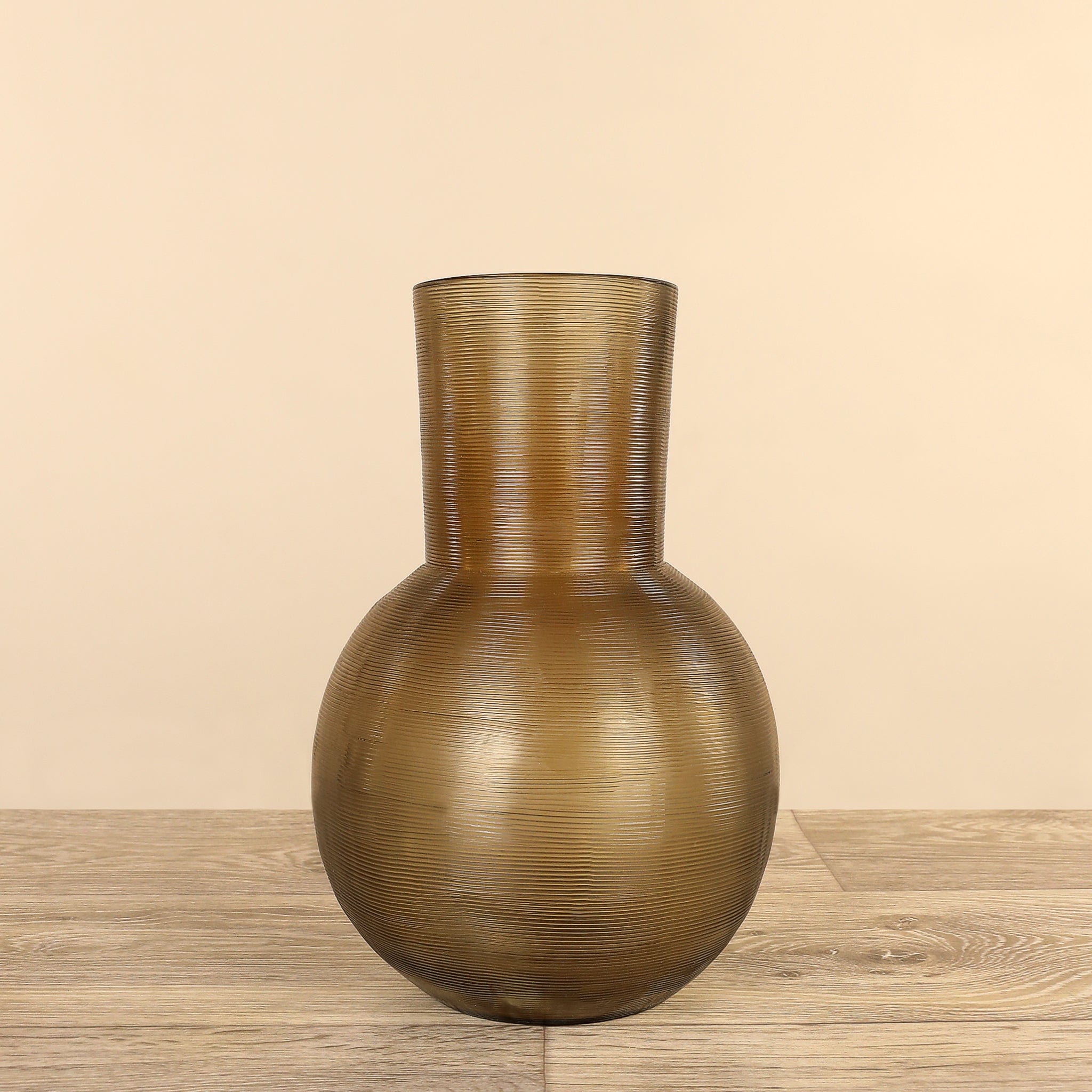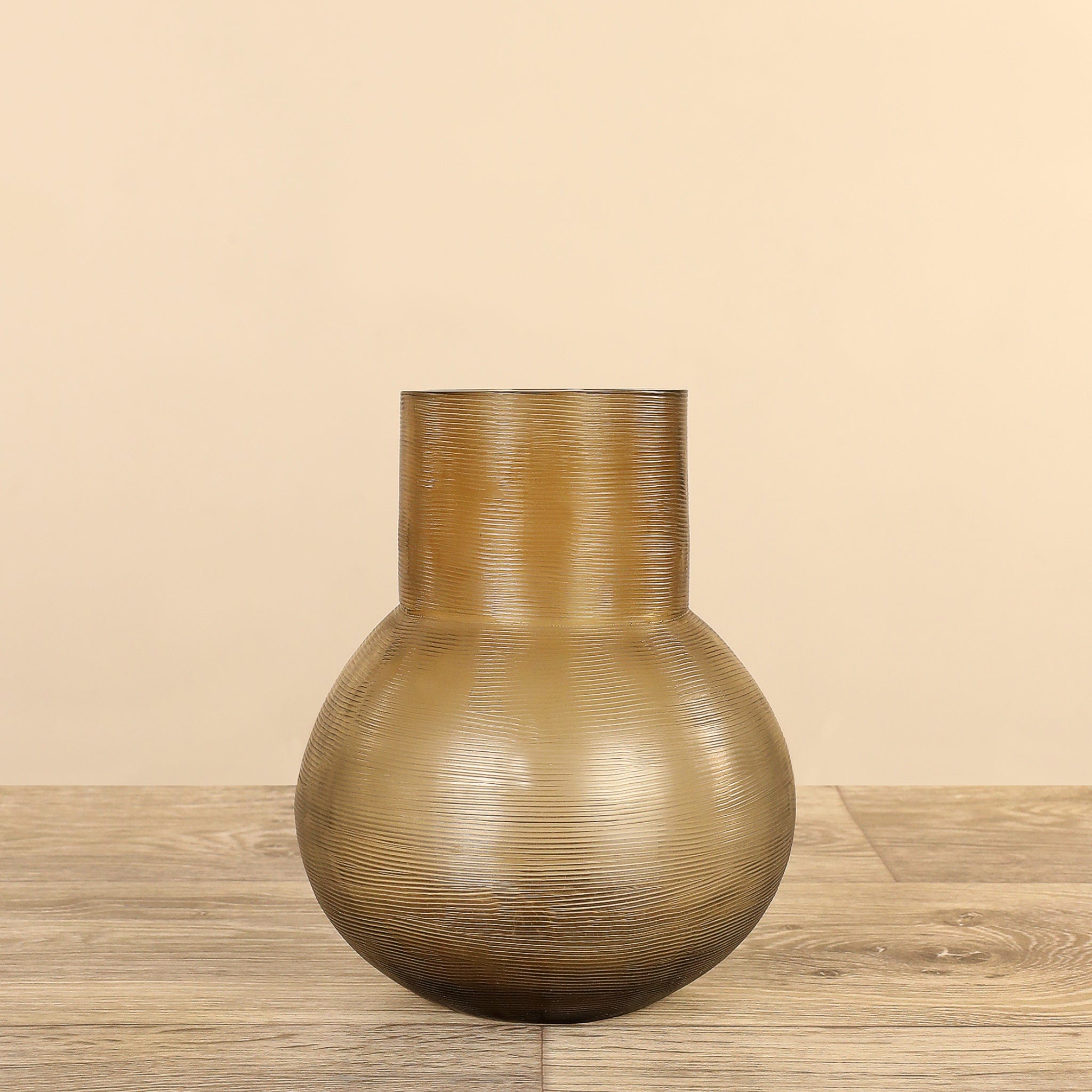 مزهرية زجاجية منفوخة يدويًا بتصميم عصري منحني يبرز أناقتها وبساطتها. تتميز بفتحة وحجم واسعَين يسمحان بتنسيقات زهور بمختلف الأحجام، كما تبدو أنيقة عند عرضها بمفردها لإبراز شكلها ولونها الأخضر الفاتح الجميل.