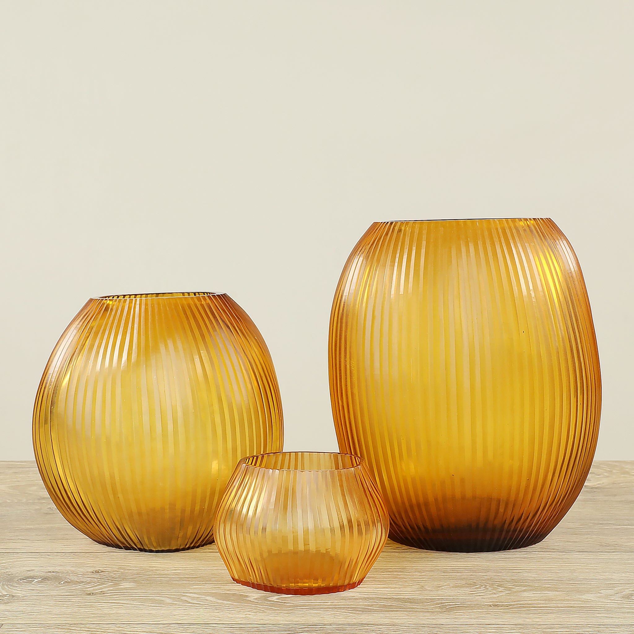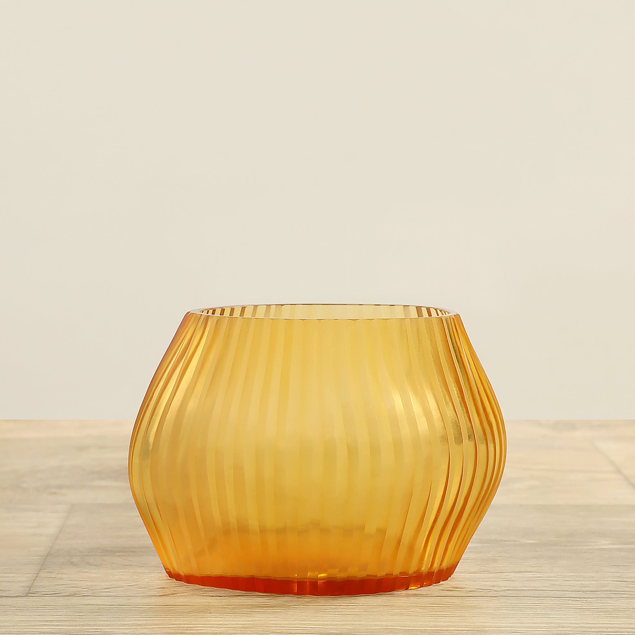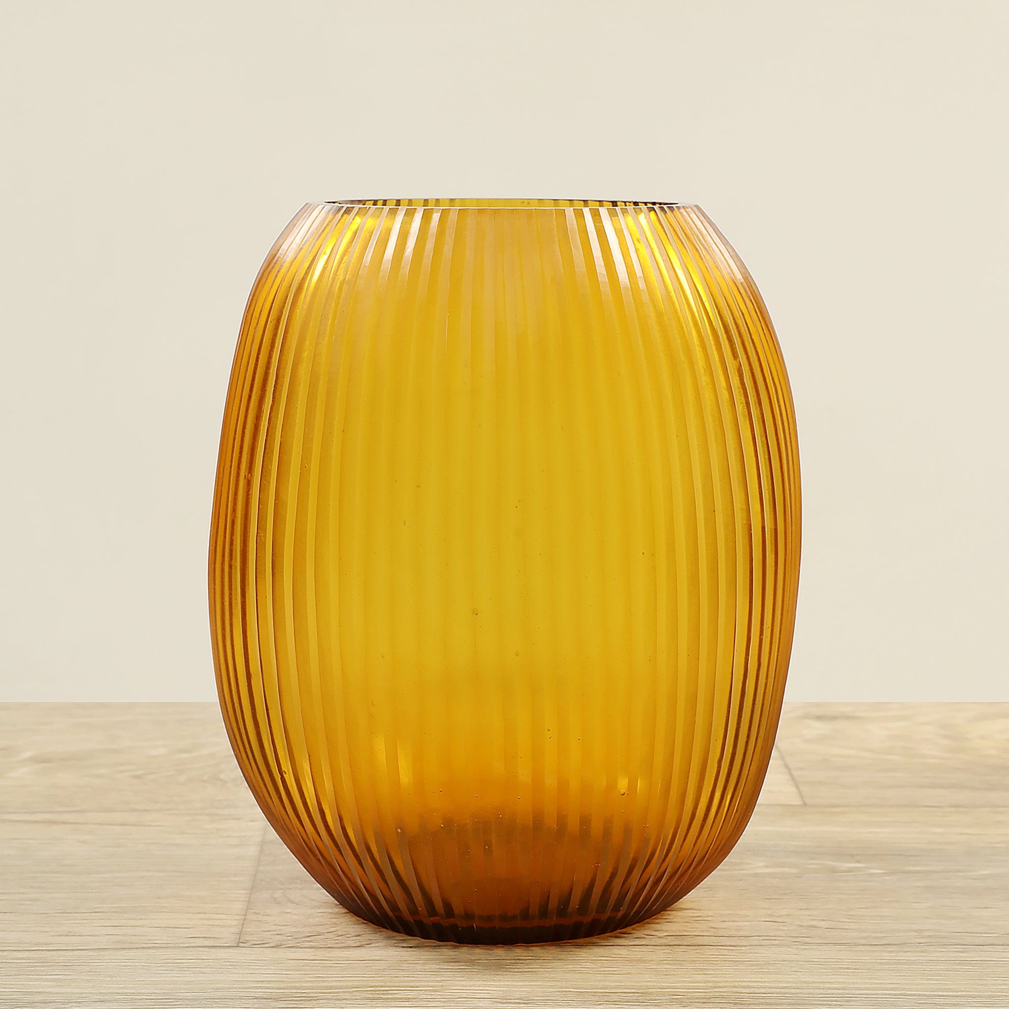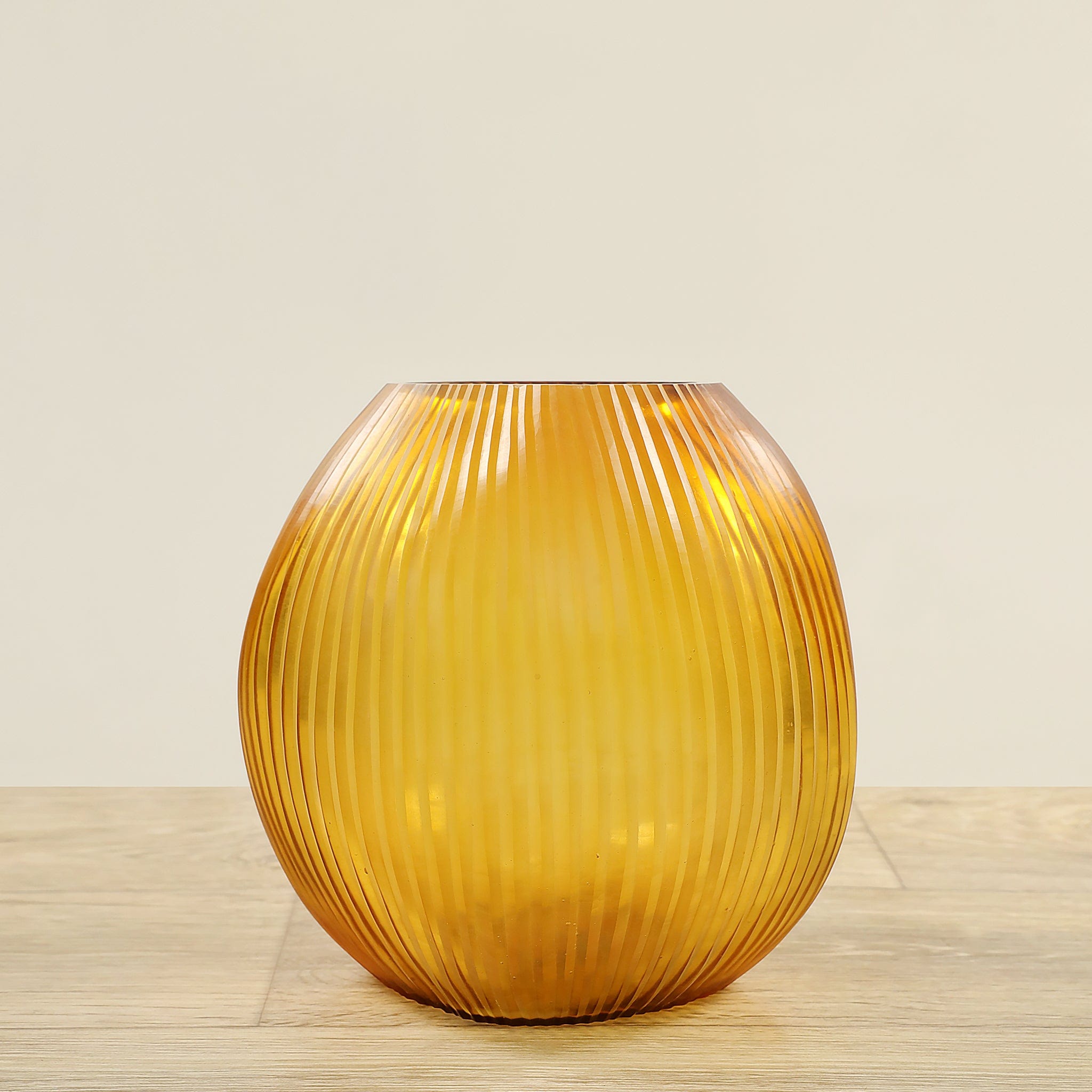 مزهرية زجاجية منفوخة يدويًا تجمع بين البساطة والأناقة العصرية. تتميز بجوانب مزخرفة تضيف عمقًا بصريًا وتصميمًا عمليًا بفوهة واسعة تسمح بترتيبات زهور كبيرة ومورقة. لونها الأصفر المشرق يضفي دفءً وطاقة على أي مساحة داخلية.