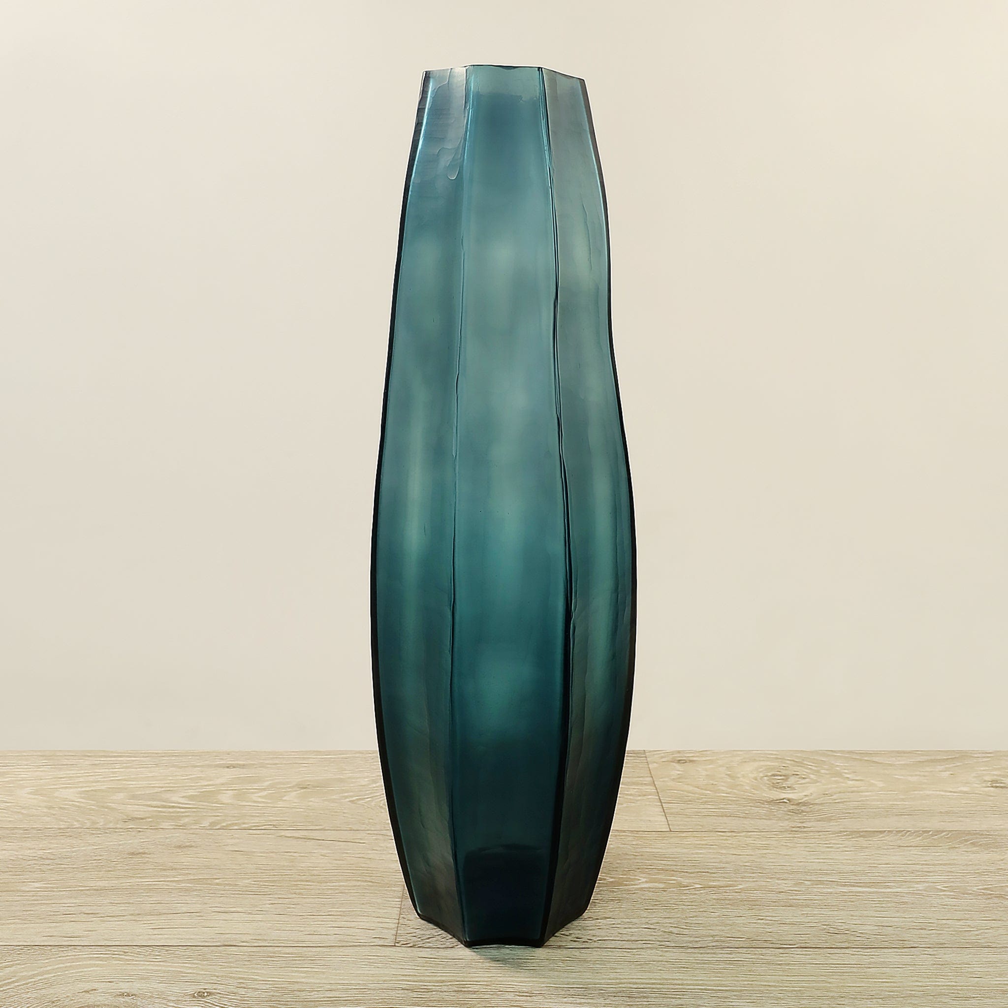 مزهرية زجاجية متينة وعصرية منفوخة يدويًا، مثالية لعرض الخضرة، الأغصان والزهور. لونها الأخضر الفيروزي العصري ينسجم بسهولة مع ألوان ديكور مختلفة، بينما يضيف تصميمها الزاوي ولمسة الفرم اليدوي مظهرًا معاصرًا ومنعشًا.