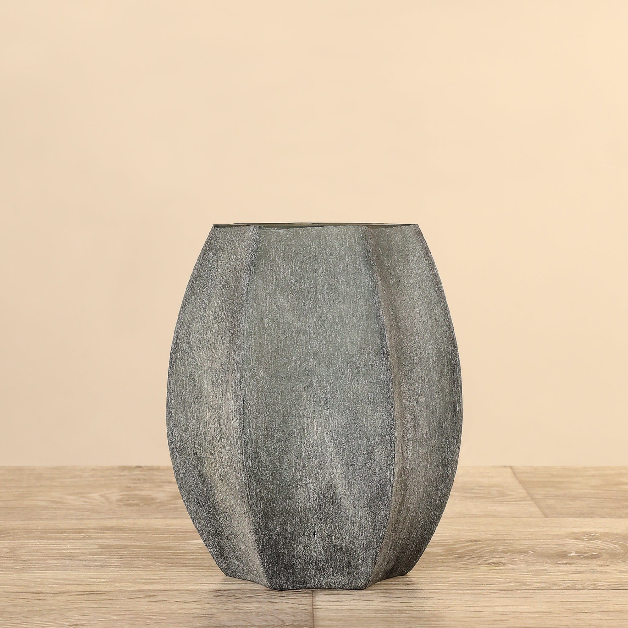 مزهرية زجاجية متينة وعصرية مصنوعة يدويًا بتقنية النفخ، مثالية لعرض الخضرة، الأغصان أو باقات الزهور. لونها الرمادي الشفاف يعزز مظهرها الأنيق ويُنسجم بسهولة مع باقي عناصر الديكور، بينما يمنحها الشكل الزاوي ولمسات النفخ اليدوي طابعًا معاصرًا ومنعشًا.