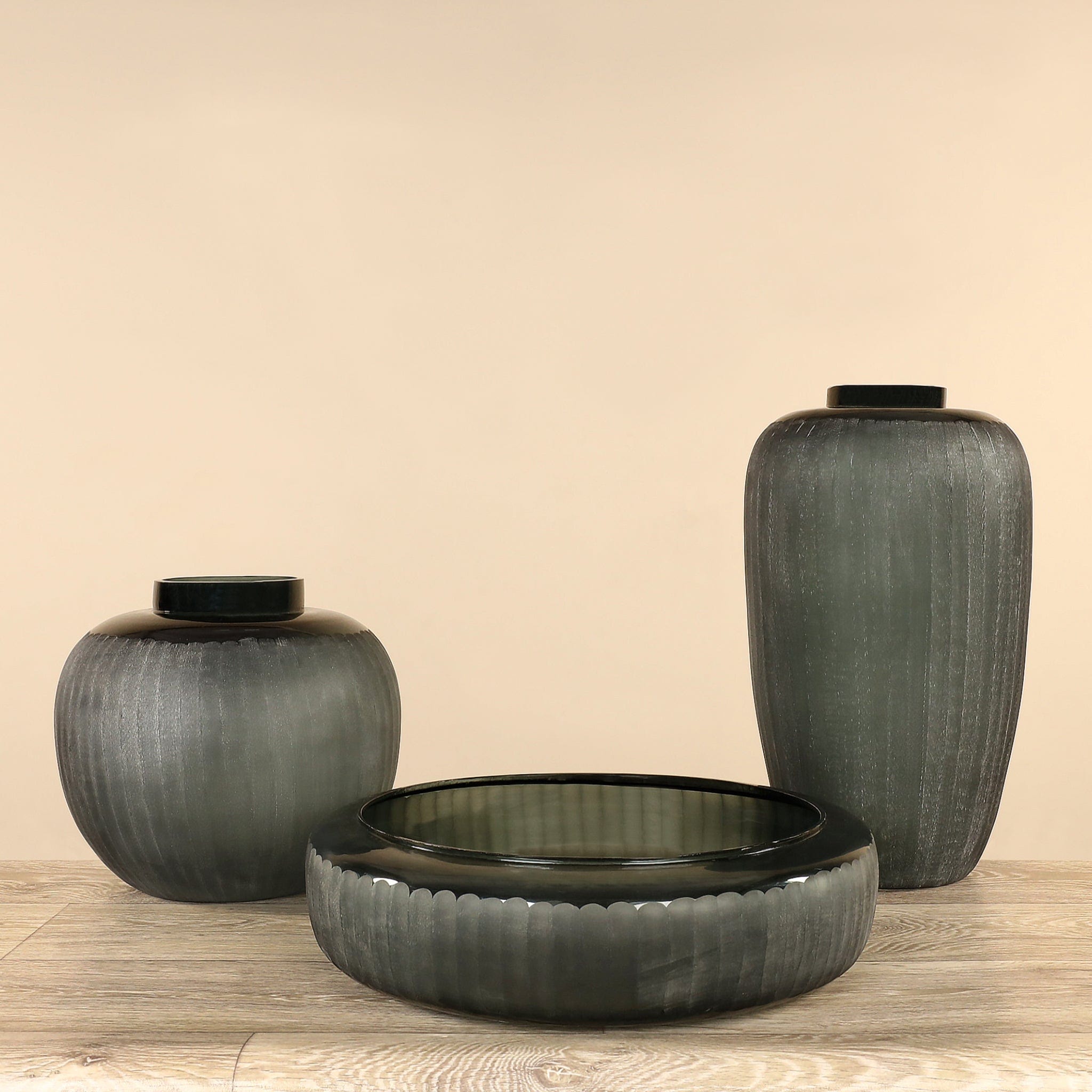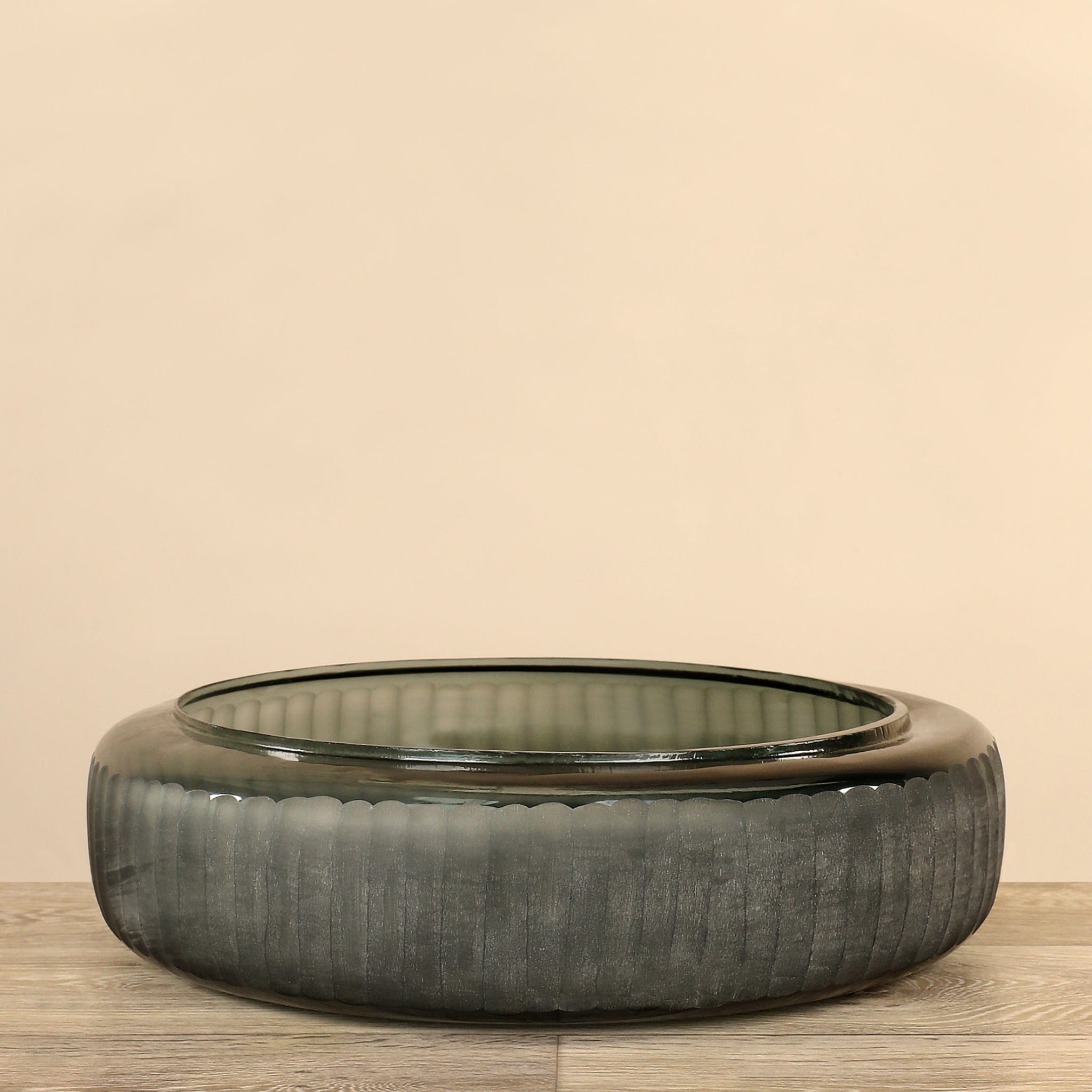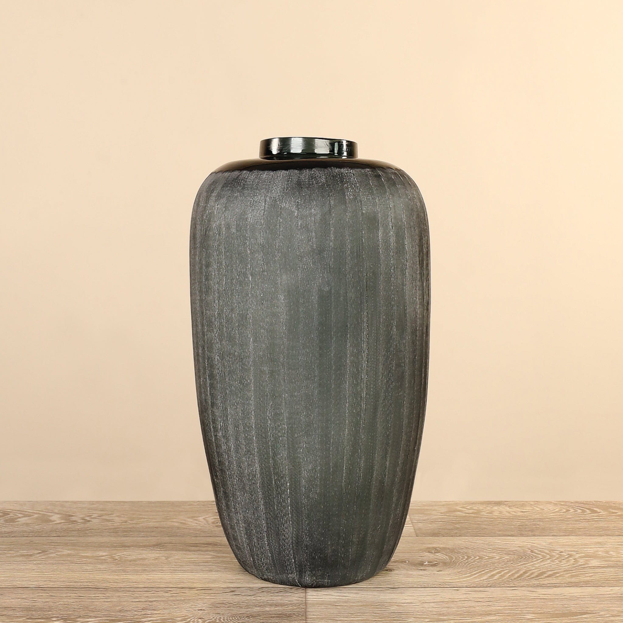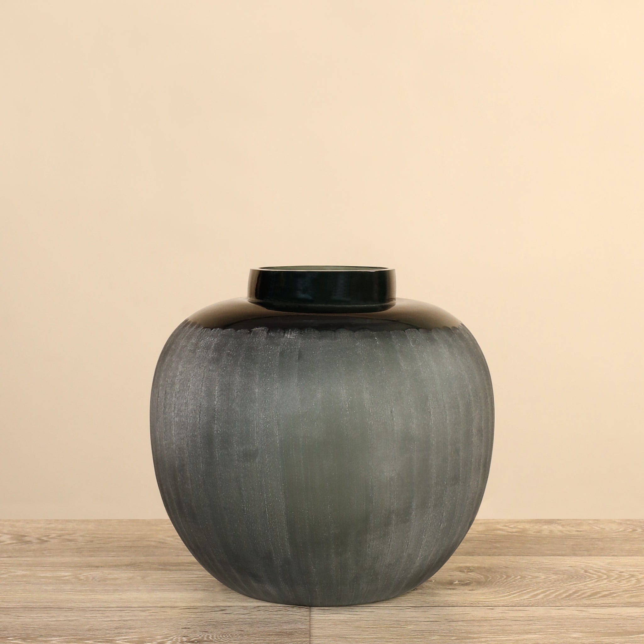 مزهرية زجاجية منفوخة يدويًا بتشطيب مخدّد أفقي يضفي ملمسًا وعمقًا بصريًا أنيقًا. تصميمها المرن يجعلها مثالية للاستخدام في أشكال متعددة — يمكن عرضها كقطعة ديكور معاصرة قائمة بذاتها أو تزيينها بأزهارك المفضلة لإضفاء لمسة طبيعية وجمالية على المكان. تناسب هذه المزهرية تشكيلة واسعة من أنماط الديكور بفضل توازنها بين البساطة واللمسة الحرفية.