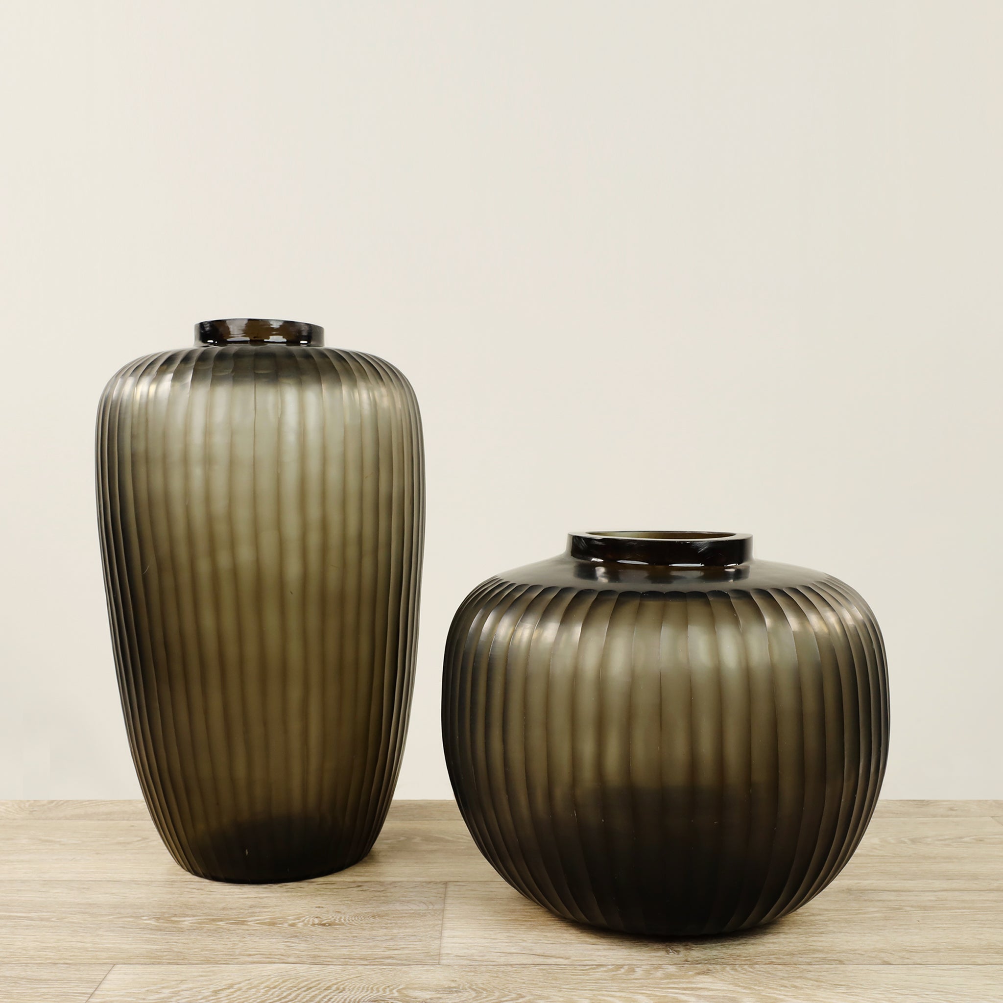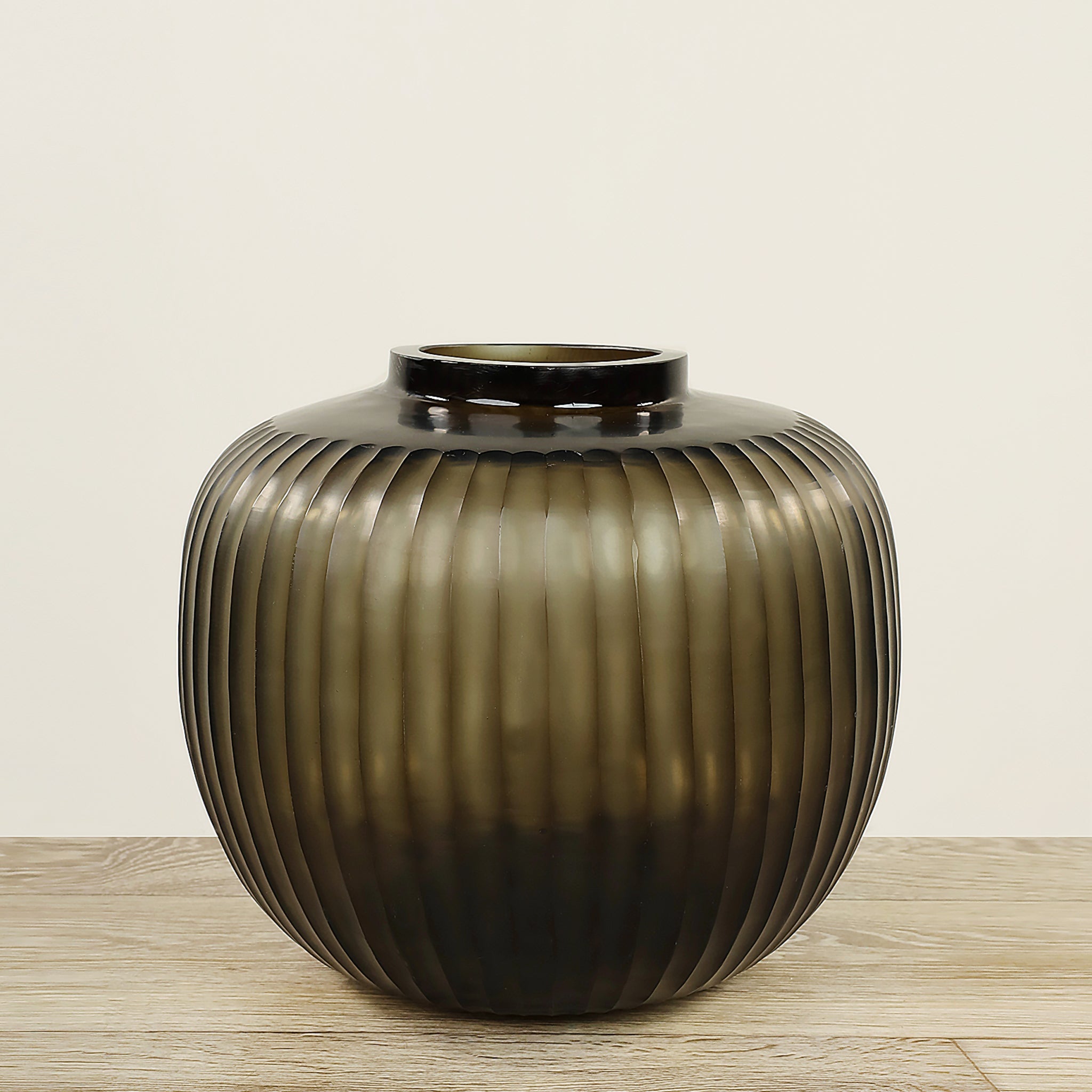 تأتي هذه المزهرية الزجاجية المصنوعة يدويًا بتشطيب مخدّد أفقياً يضفي عليها ملمساً وبُعداً بصرياً أنيقاً. تصميمها متعدد الاستخدامات يجعلها مناسبة لعرضها كقطعة ديكور معاصرة مستقلة أو لاحتضان باقات زهورك المفضلة، لتكمل وتجمّل مختلف أنماط الديكور الداخلي.