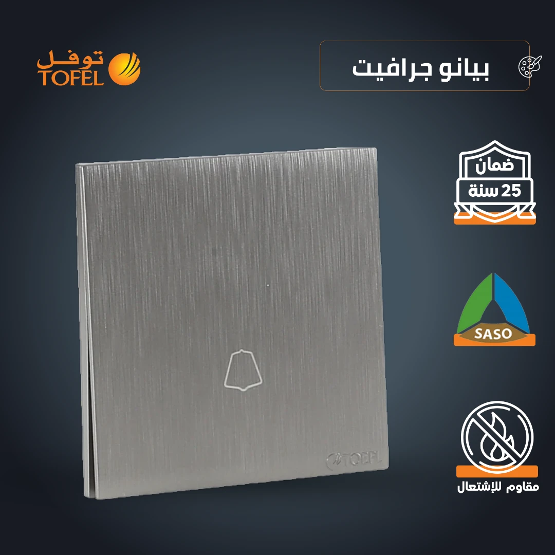 مفتاح جرس بلون بيانو جرافيت مصمم لتوصيل التيار مع أجهزة التنبيه والجرس المنزلي عن طريق ضغط أو نقرة قصيرة. يجمع بين مظهر عملي وأداء موثوق، مع غطاء خارجي معزول وتصميم يسهل تركيبه وفكه.
