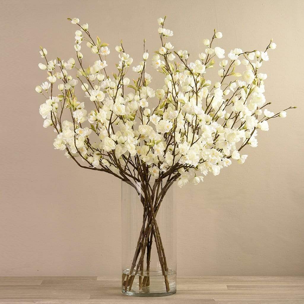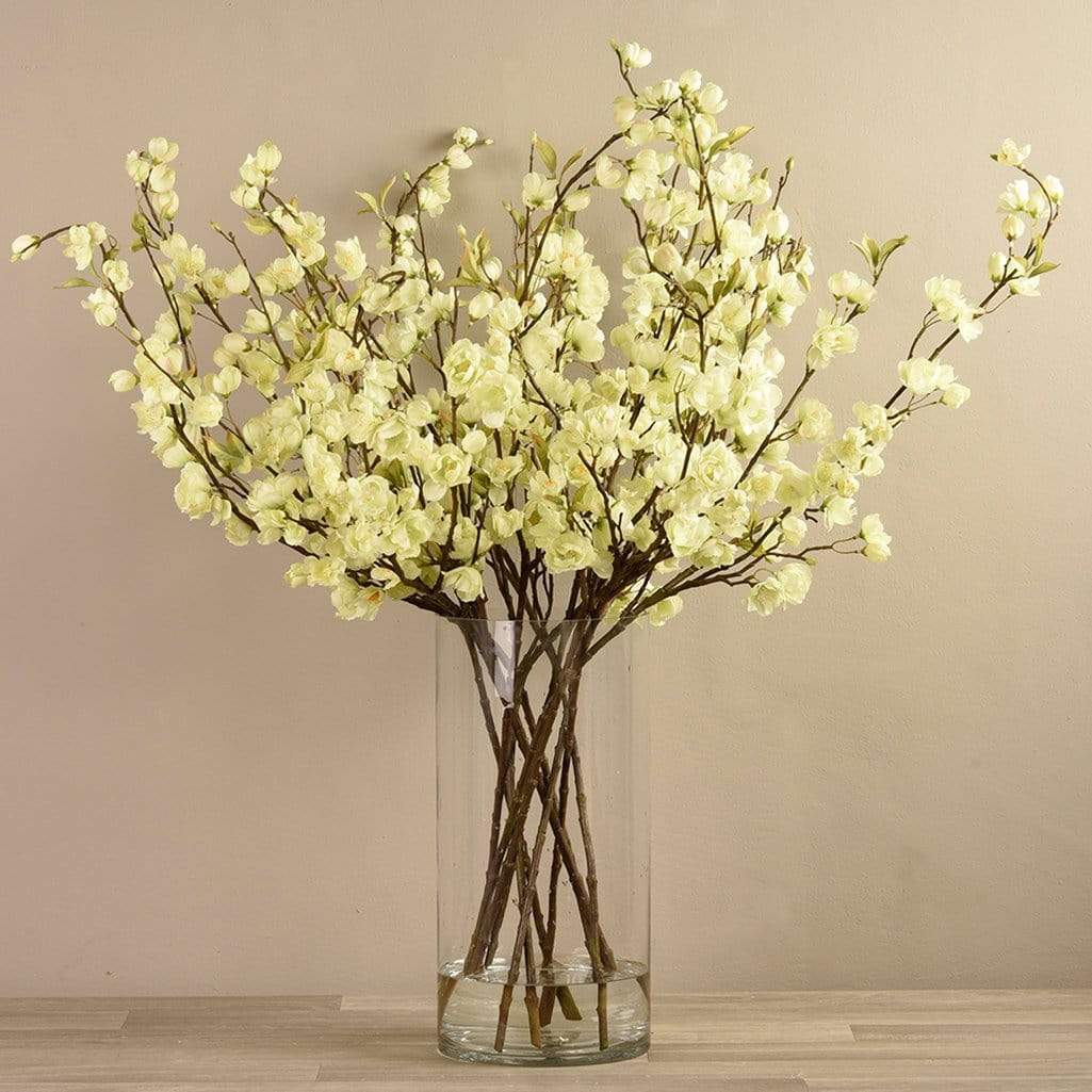 زهر الكرز الصناعي في مزهرية زجاجية