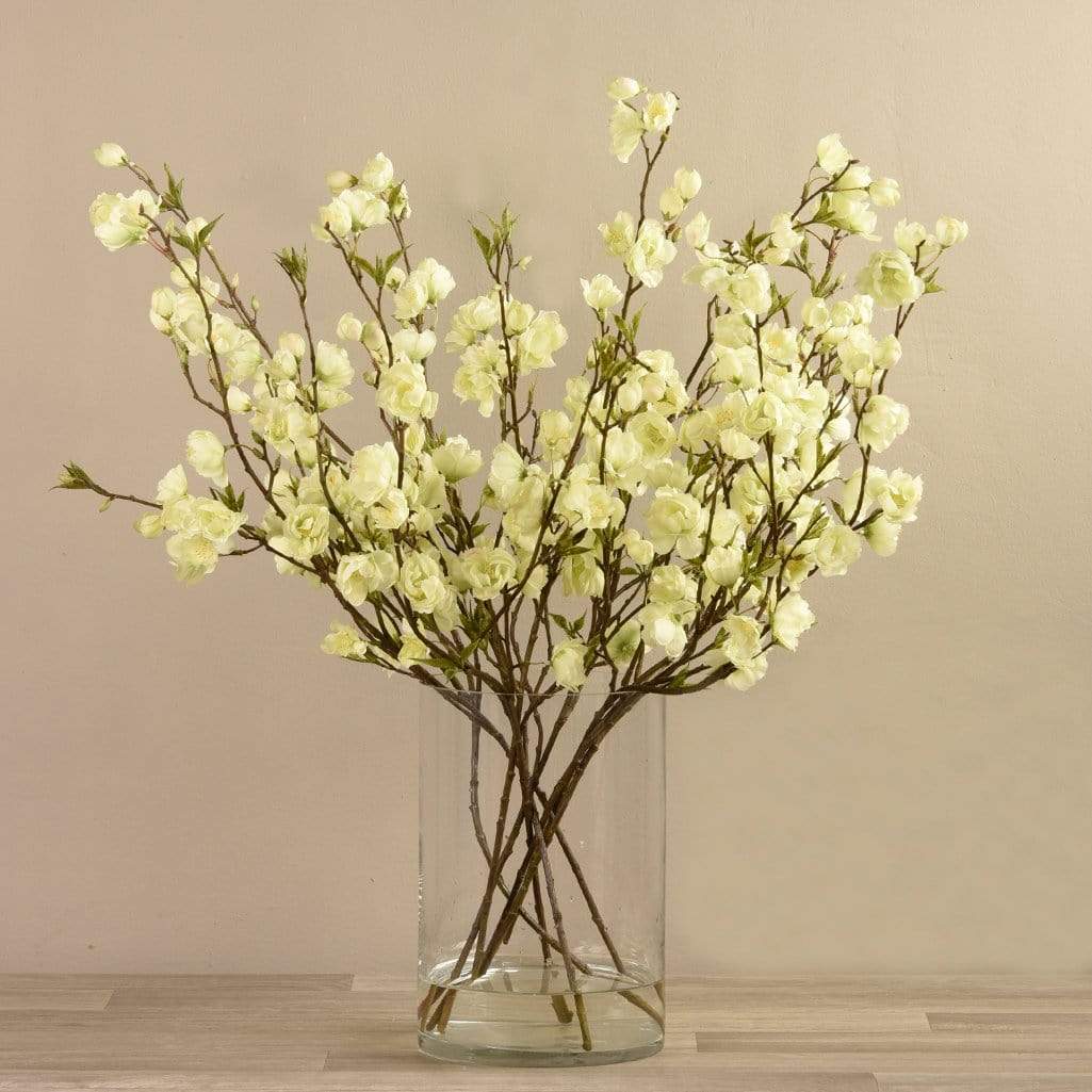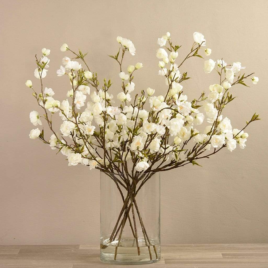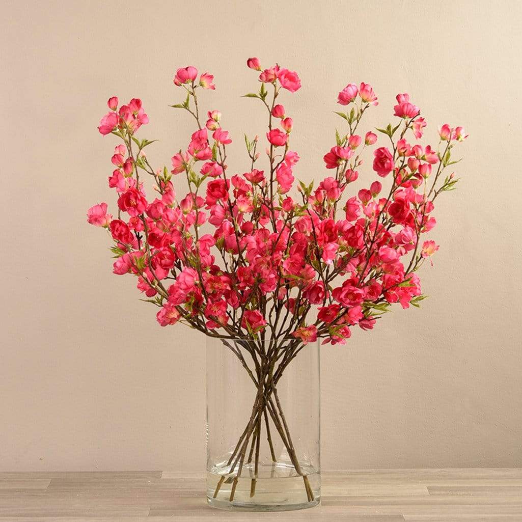 زهر الكرز الصناعي في مزهرية زجاجية