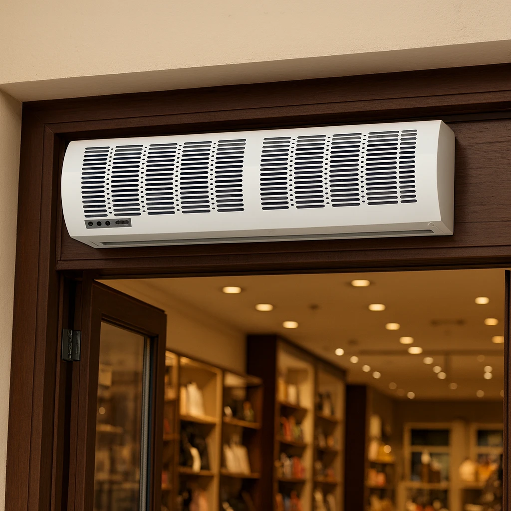 - يُركب فوق إطار الباب أو المدخل بحيث يوجه الهواء عموديًا لأسفل لتشكيل الحاجز الفعال